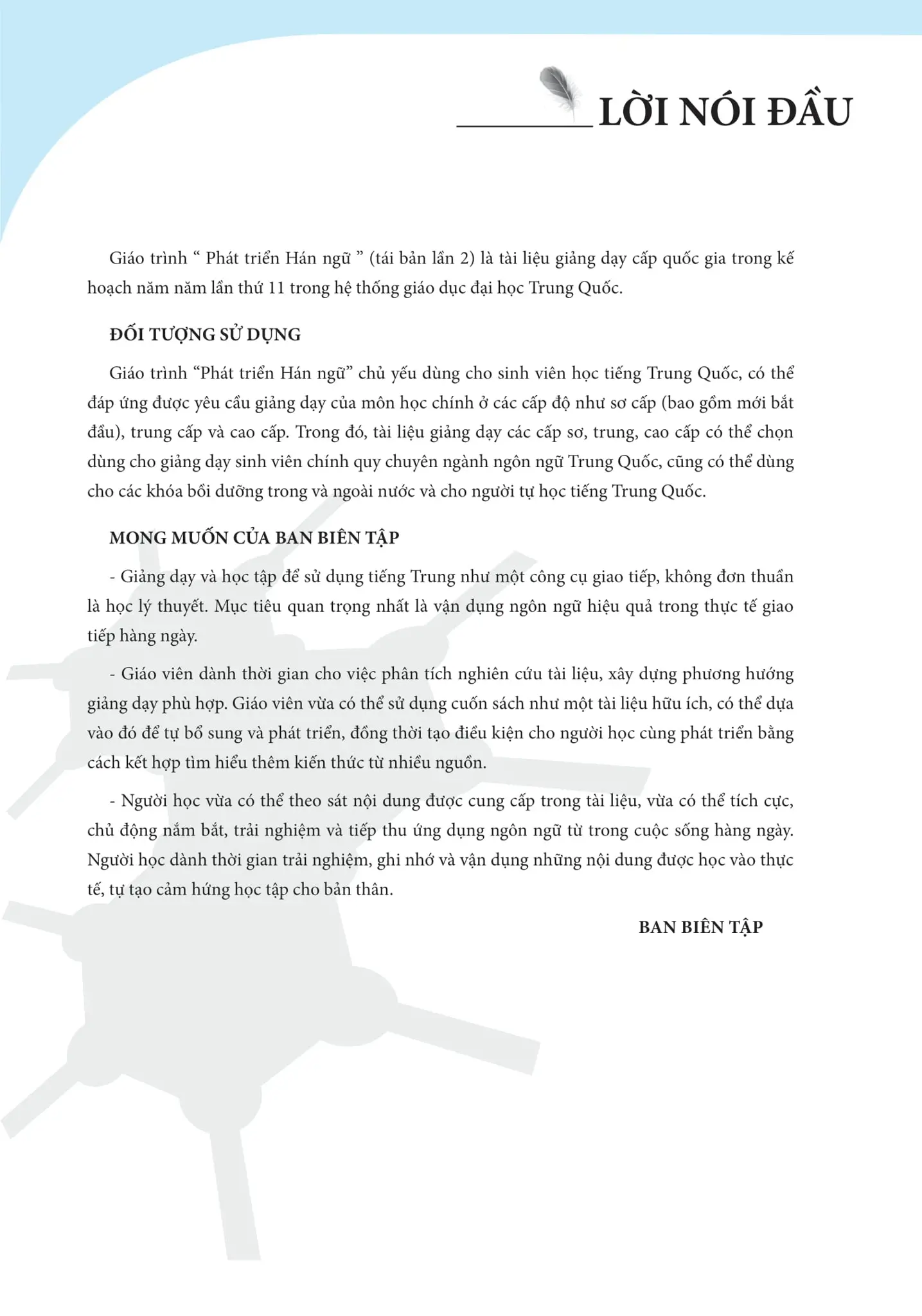 “Giáo trình Phát triển Hán ngữ tổng hợp sơ cấp 2 – Tập 1” nằm trong Bộ Giáo trình Phát triển Hán ngữ, cuốn sách mở rộng và nâng cao kiến thức sau “Giáo trình Phát triển Hán ngữ tổng hợp sơ cấp 1 – Tập 2”