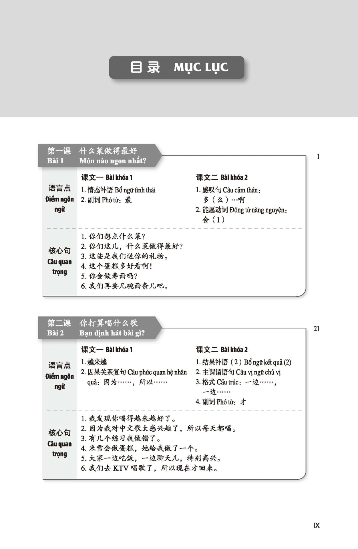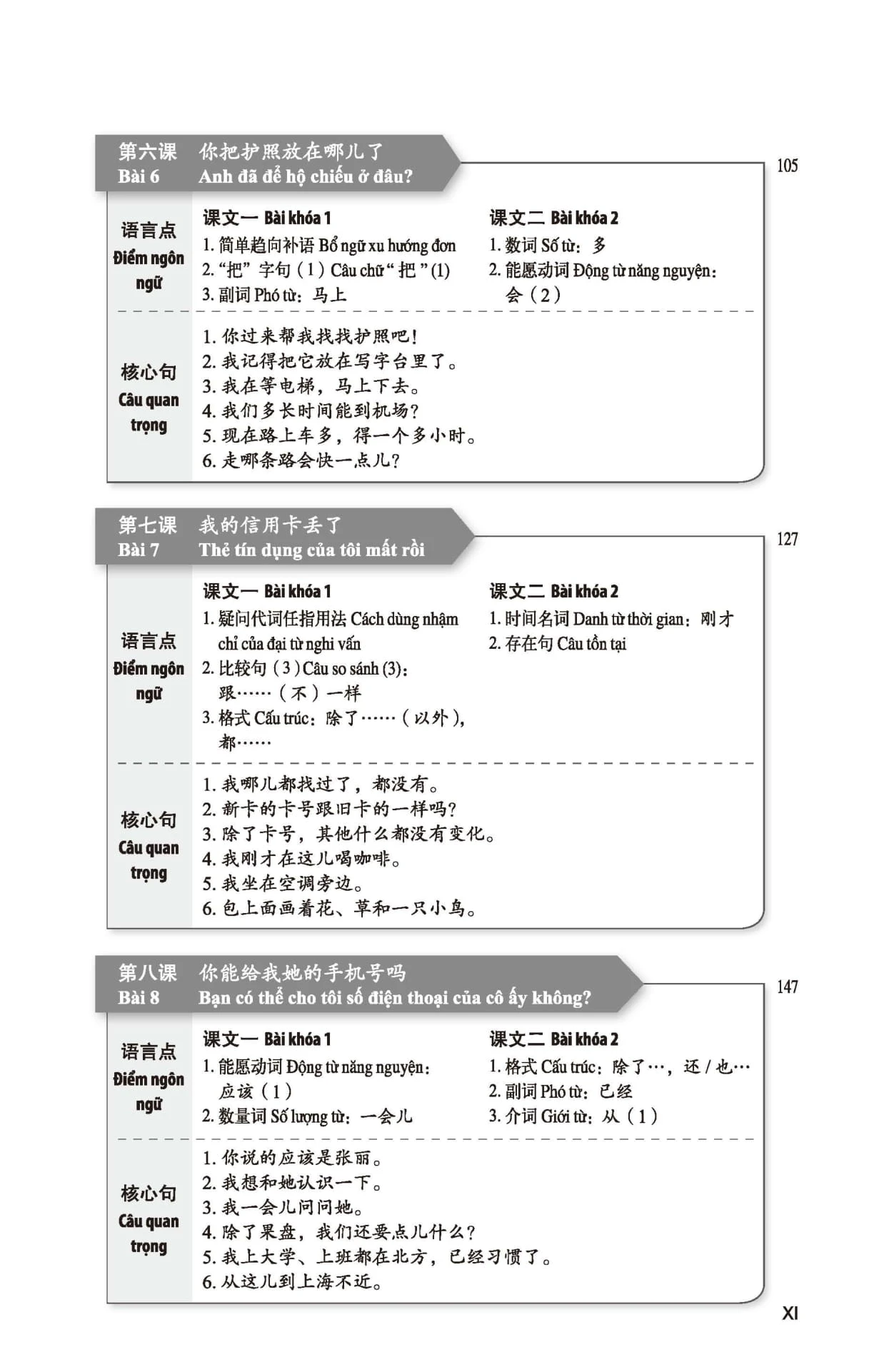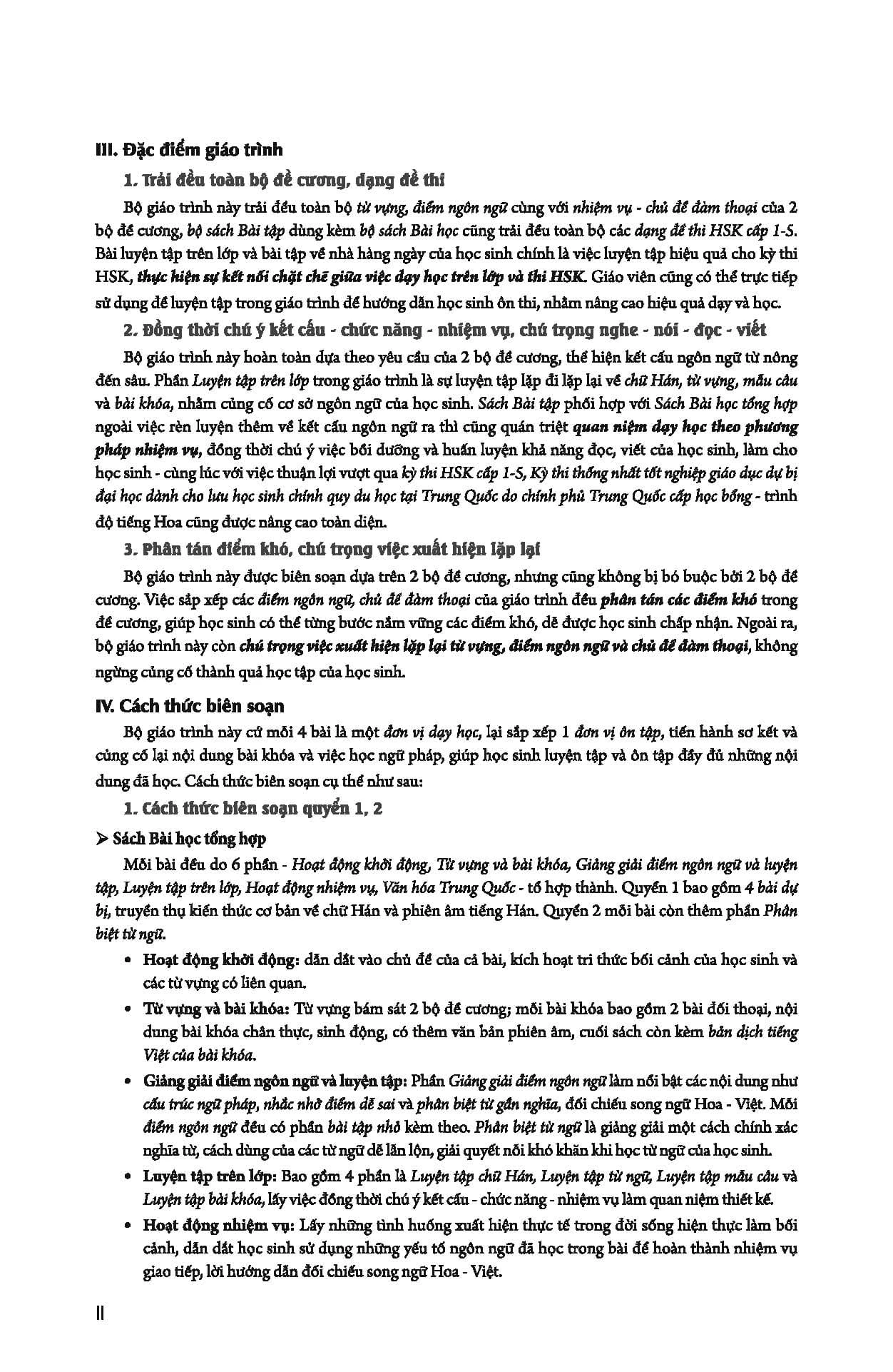 Bộ giáo trình này bao gồm 6 quyển Sách Bài học tổng hợp, 6 quyển Sách Bài tập tổng hợp. Bài học và Bài tập phối hợp với nhau, mỗi quyển 16 bài.
