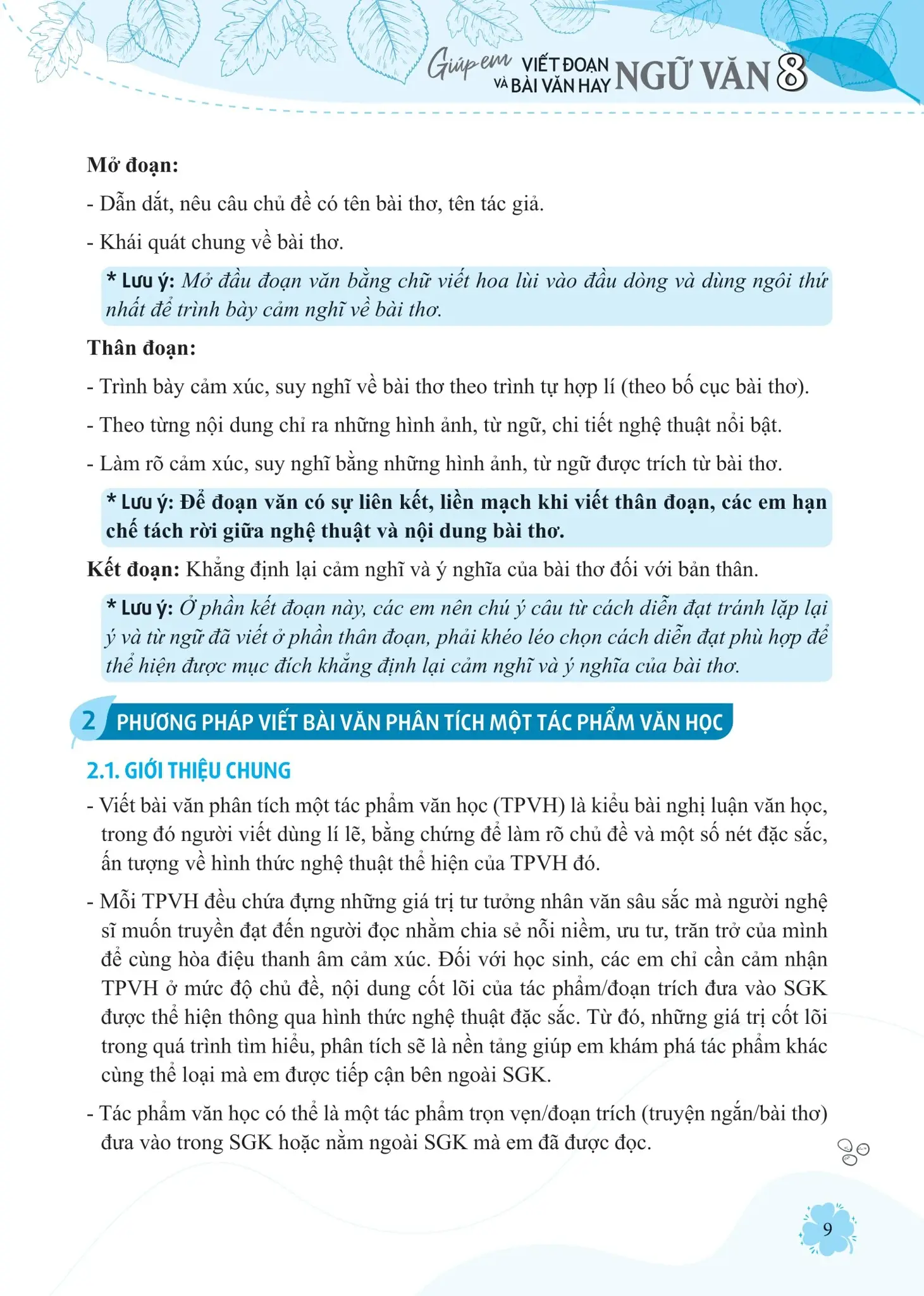 2. Phương pháp viết đoạn và bài văn theo các dạng bài trong SGK