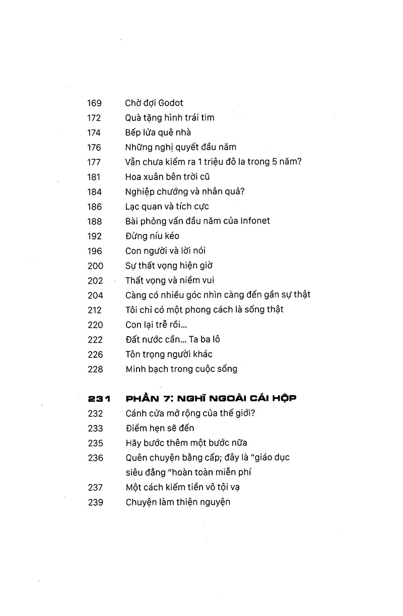 Tiếng nói trăn trở ấy bao quát nhiều khía cạnh cuộc sống - từ kinh tế, kinh doanh đến tâm linh, cách sống thậm chí... cách dạy con ấy - tưởng chừng sẽ bị lạc lõng và lãng quên giữa thế giới quá nhiều biến động và cám dỗ hiện tại. Nhưng không, tiếng nói - tiếng lòng ấy lại được trân trọng bởi rất nhiều người, lạ thay, người trẻ.
