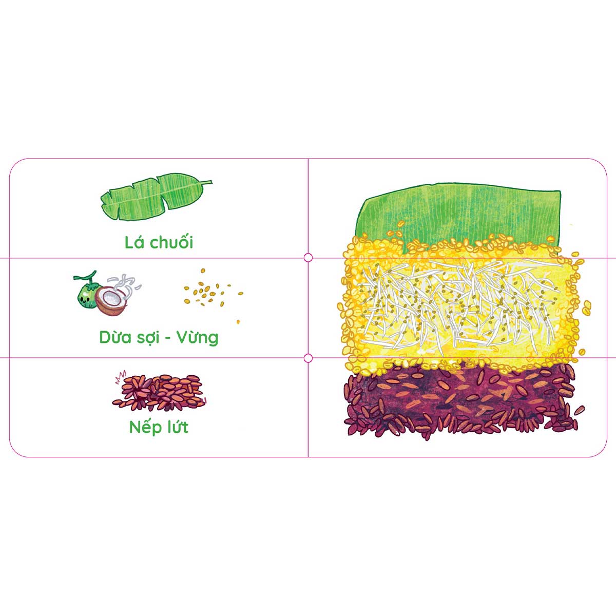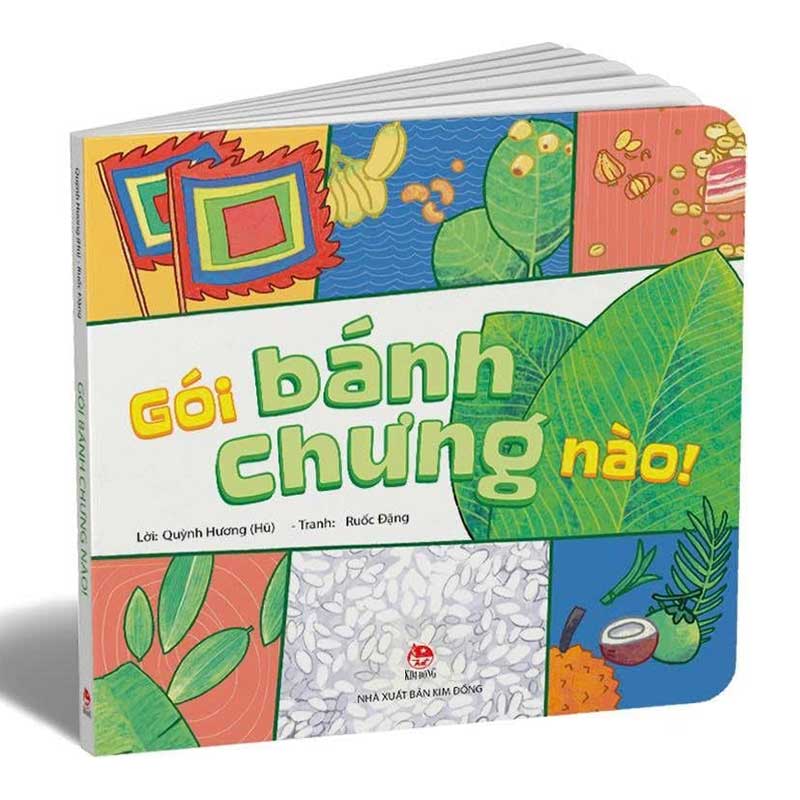 “Gói bánh chưng nào!” là cuốn sách Tết tương tác được in dưới hình thức cartone cứng cáp với các góc được bo tròn an toàn cho bé. Điểm đặc biệt của cuốn sách này là mỗi trang sách được chia thành 3 phần với mỗi phần là các nguyên liệu khác nhau, giúp các em nhỏ có thể lật giở, ghép hình để tạo ra chiếc bánh chưng với nguyên liệu độc đáo trong dịp Tết cổ truyền. Không chỉ cho bé các phút giây bận rộn trong dịp Tết, cuốn sách tương tác độc đáo này còn giúp các em nhỏ ghi nhớ các nguyên liệu làm bánh chưng truyền thống của Việt Nam.