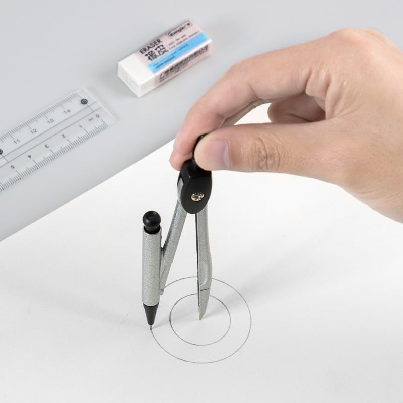 - Compa chì kim: Compa được thiết kế chắc chắn, dễ sử dụng, dùng với ruột chì kim, giúp vẽ các đường tròn đẹp và chuẩn xác.
