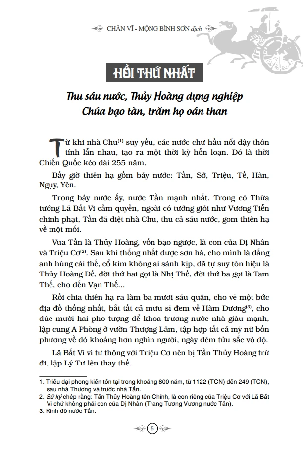 Tần Thủy Hoàng dùng sức mạnh tóm thâu lục quốc. Nhưng vì chỉ biết lấy bạo lực, không biết lấy nhân nghĩa thu phục lòng người mà lòng người rời bỏ, rốt cuộc bị Hạng Vũ tiêu diệt. Nhưng thắng Tần rồi Hạng Vũ lại lầm đường đi vào vết xe đổ nên đã bị Lưu bang trừ khử.