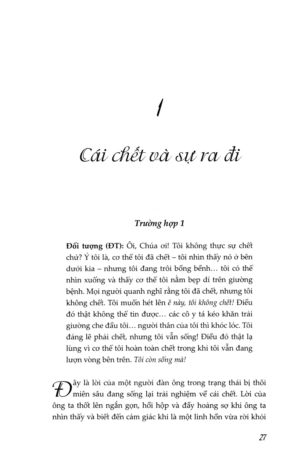Cuối cùng tôi cần nói rằng những gì bạn sắp đọc có thể là một cú sốc cho quan niệm của bạn về cái chết. Những nội dung được trình bày ở đây có thể đi ngược lại những niềm tin triết học và tôn giáo của bạn. Có những độc giả sẽ tìm thấy sự củng cố cho những quan niệm hiện hữu của họ. Đối với những người khác, các thông tin được đưa ra trong những trường hợp điển hình này có vẻ như những câu chuyện hư cấu có tính chủ quan, gợi nhớ đến những câu chuyện khoa học viễn tưởng. Dù niềm tin của bạn ra sao tôi cũng hy vọng bạn sẽ suy nghĩ về hàm ý dành cho nhân loại nếu những gì các đối tượng của tôi nói về cuộc sống sau cái chết là chính xác.