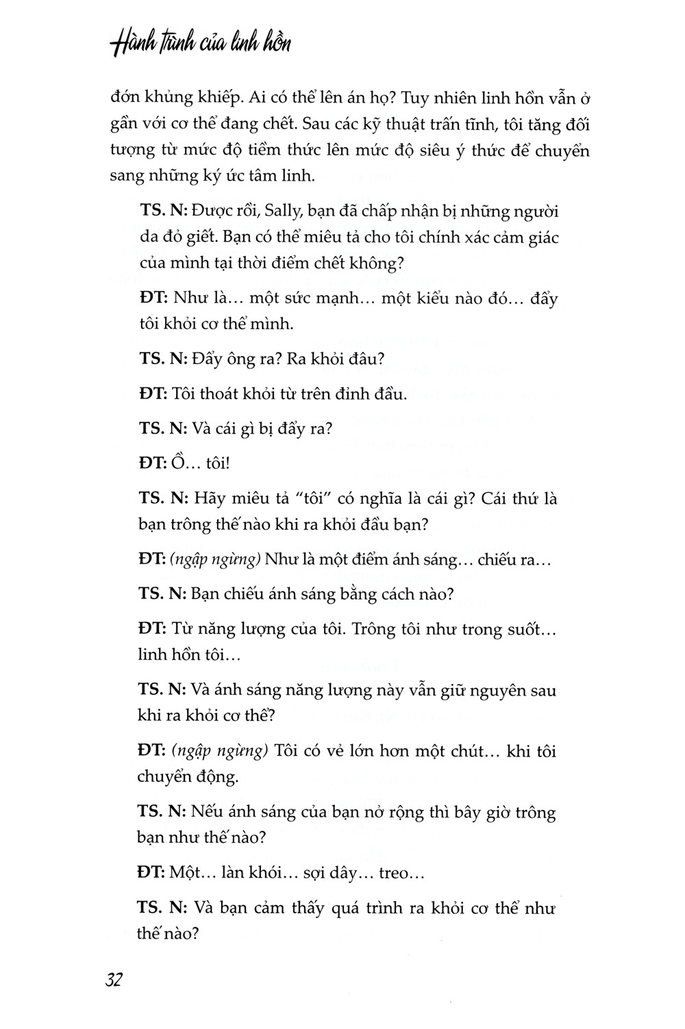 Sau đó tôi khám phá ra một phần quan trọng nữa. Tôi tìm ra rằng có thể nhìn vào thế giới linh hồn qua cặp mắt tâm trí của đối tượng bị thôi miên, người có thể thuật lại cho tôi về cuộc đời giữa các kiếp trên Trái đất.