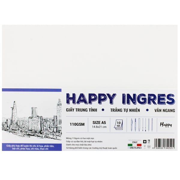 Giấy vẽ Happy Ingres 110gsm với chất lượng tiêu chuẩn của Ý.