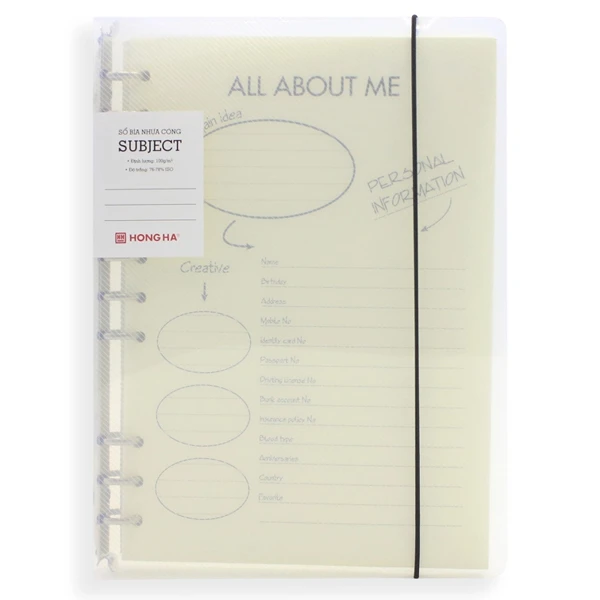 - Sổ còng nhựa tiện lợi có thể tháo rời để thay đổi ruột giấy bên trong.