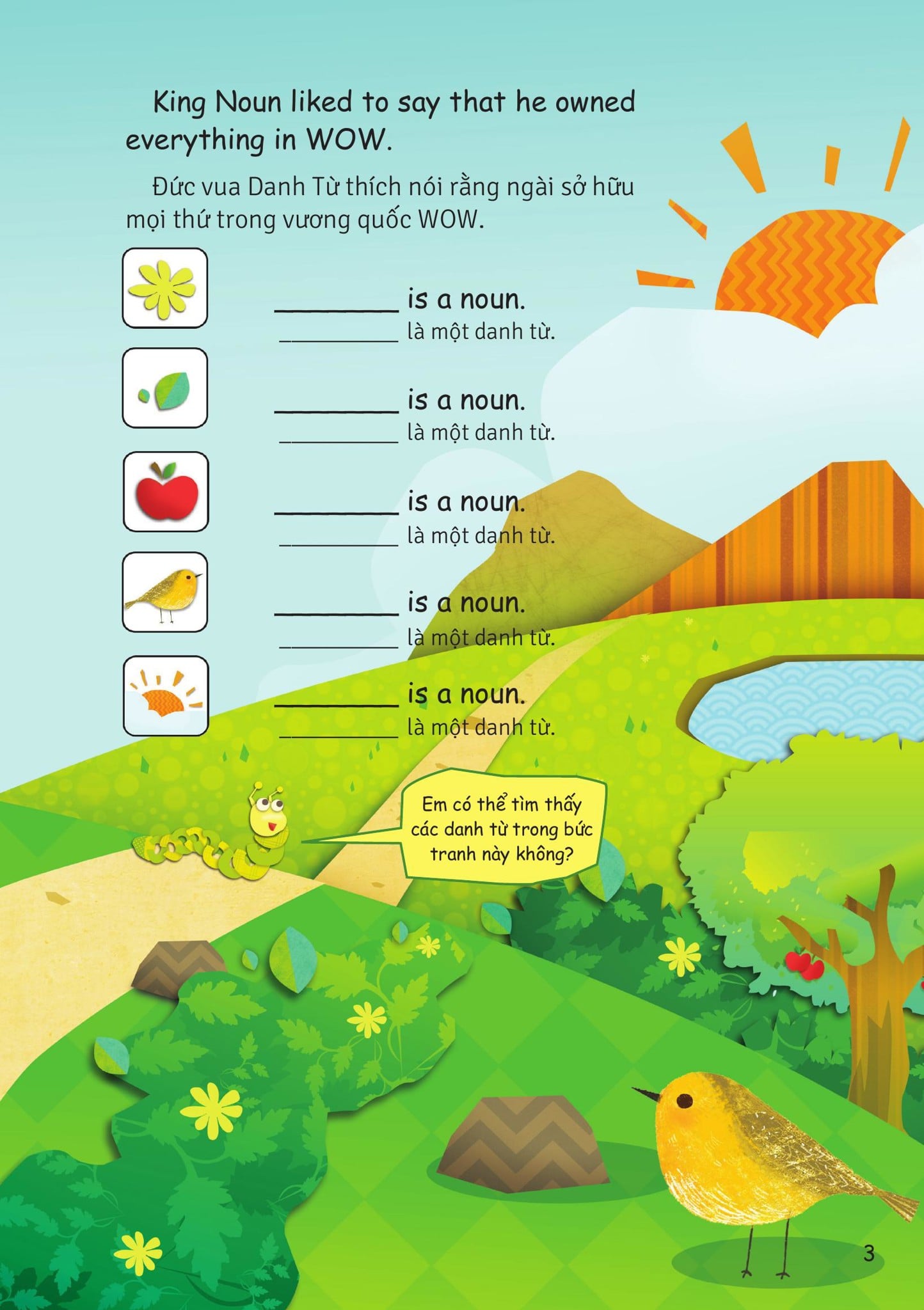 - Mỗi phần ngữ pháp như danh từ, động từ, tính từ, đại từ, giới từ… sẽ xuất hiện tự nhiên trong câu chuyện, giúp con hiểu và nhớ ngay lập tức!