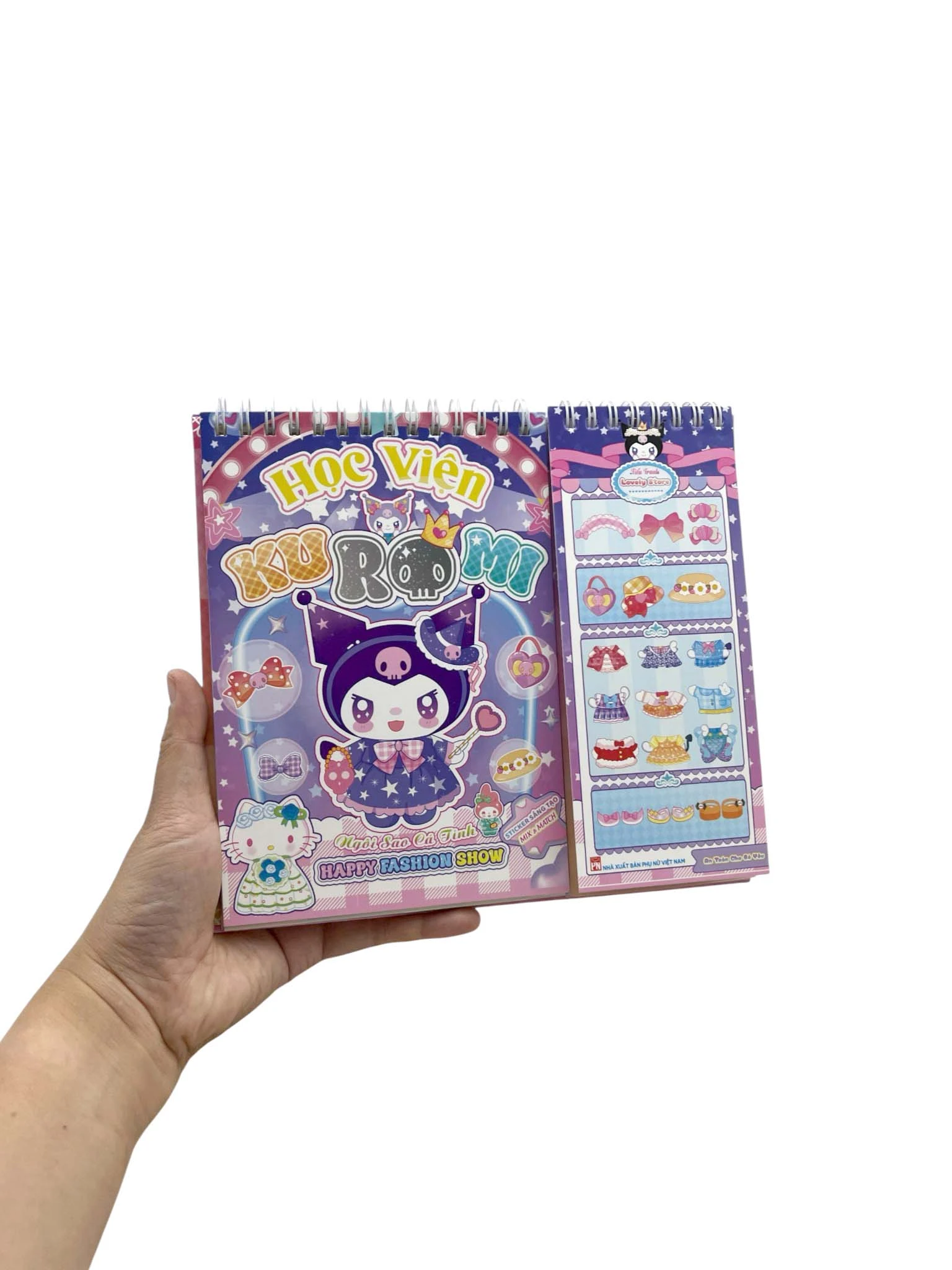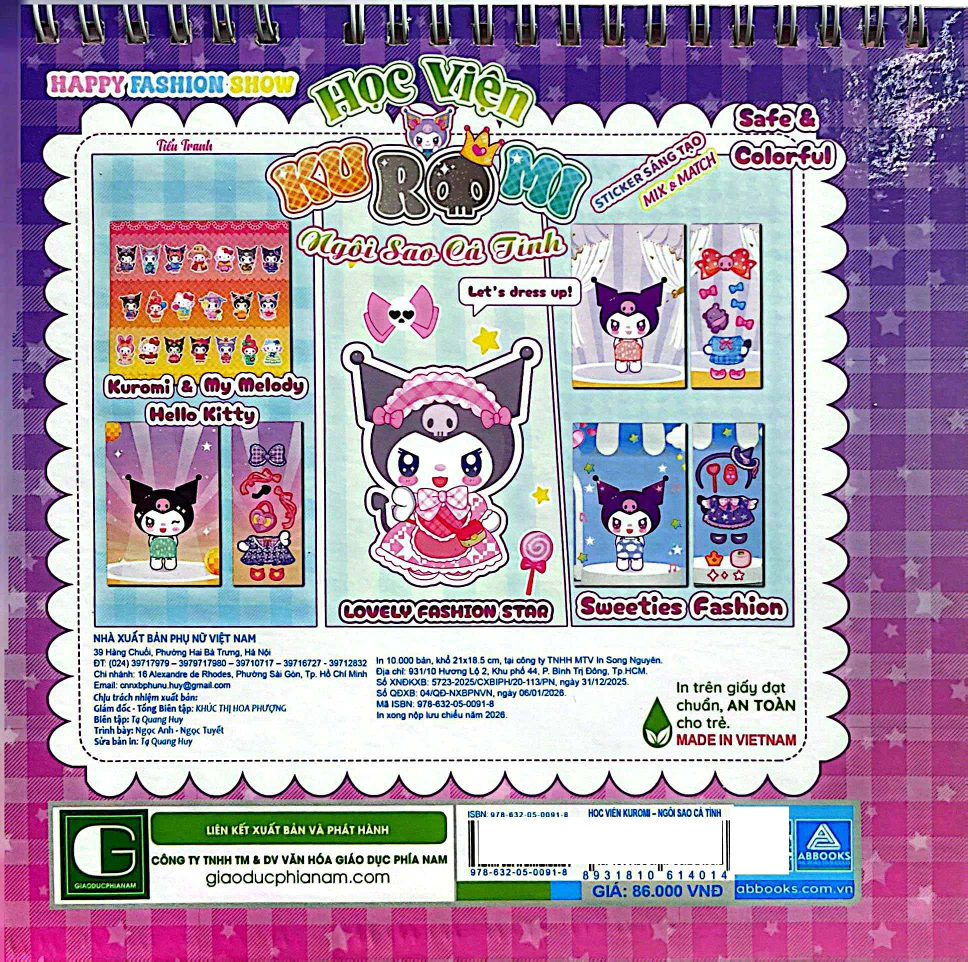 Sách Bóc Dán Sticker Học Viện Kuromi Ngôi Sao Cá Tính là sách hoạt động sáng tạo dành cho trẻ em, xoay quanh nhân vật Kuromi với chủ đề Happy Fashion Show. Cuốn sách mang đến trải nghiệm bóc dán sticker mix & match, giúp bé tự do sáng tạo phong cách thời trang theo cá tính riêng.