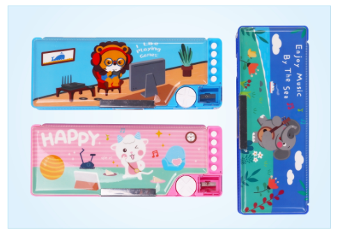 Sản phẩm gồm các ngăn chứa rộng và khay cài bút để bé sắp xếp bút viết được gọn gàng.