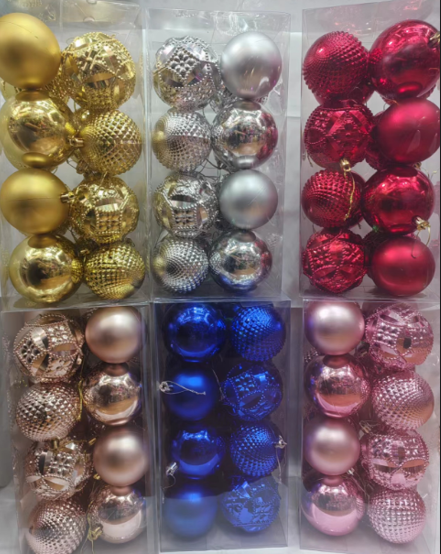 Hộp gồm các trái châu có kích thước 8cm dùng làm phụ kiện trang trí giáng sinh không thể thiếu như trang trí cây thông noel, trang trí trần nhà, cửa kính, cửa sổ....