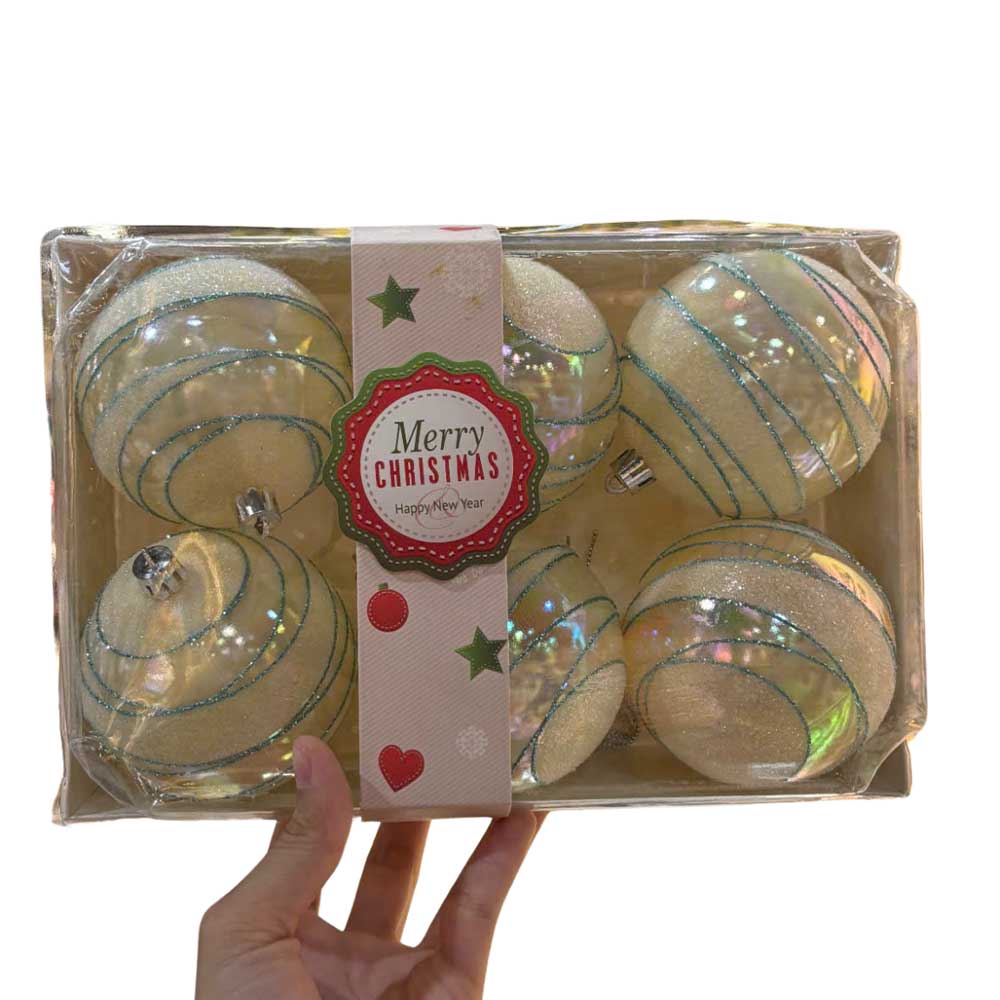 Hộp gồm các trái châu có kích thước 8cm dùng làm phụ kiện trang trí giáng sinh không thể thiếu như trang trí cây thông noel, trang trí trần nhà, cửa kính, cửa sổ....