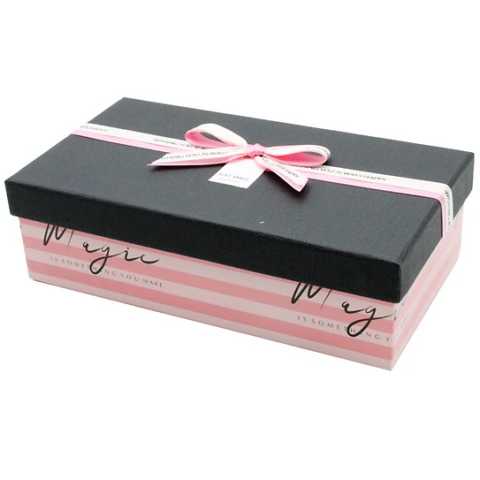 Hộp quà cao cấp với chất liệu giấy hộp cứng cáp, nắp rời có nơ, vừa xinh xắn lại vừa tiện cho người sử dụng. Nơ được phối màu trùng với màu thân hộp, tạo sự hài hoà về màu sắc của hộp quà.