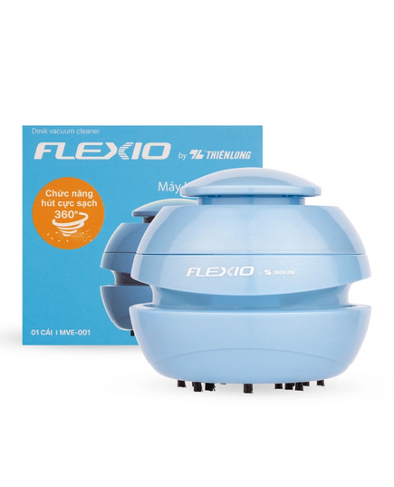 Hút Bụi Mini Mve-001 Xanh         Thương   hiệu   Flexio       Kích   thước   83 x 83 x 77 mm       Tiêu   chuẩn   TCCS   0170:2023/TL-MHB       Trọng   lượng   114.5 gram       Điện   áp   3 V (02 Pin AA)       Xuất   xứ   Việt Nam       Sản   xuất   Trung Quốc       Khuyến   cáo   Tránh nguồn   nhiệt, hóa chất. Không thích hợp cho trẻ dưới 3 tuổi.  Thích hợp để hút bụi gôm, giấy, bút chì, vụn snack...bất kì bụi nhỏ trên bất kì bề mặt như bàn phím máy tính, mặt bàn, đệm xe, mặt phẳng khác.Lông chải cứng, linh hoạt, hút không kẹt.Độ ồn thấp <70dBMáy không hoạt động khi lắp chưa hoàn chỉnh, lắp sai hoặc mở nắp khi máy đang chạy.Phù hợp với học sinh, nhân viên văn phòng và người đam mê dọn dẹp.