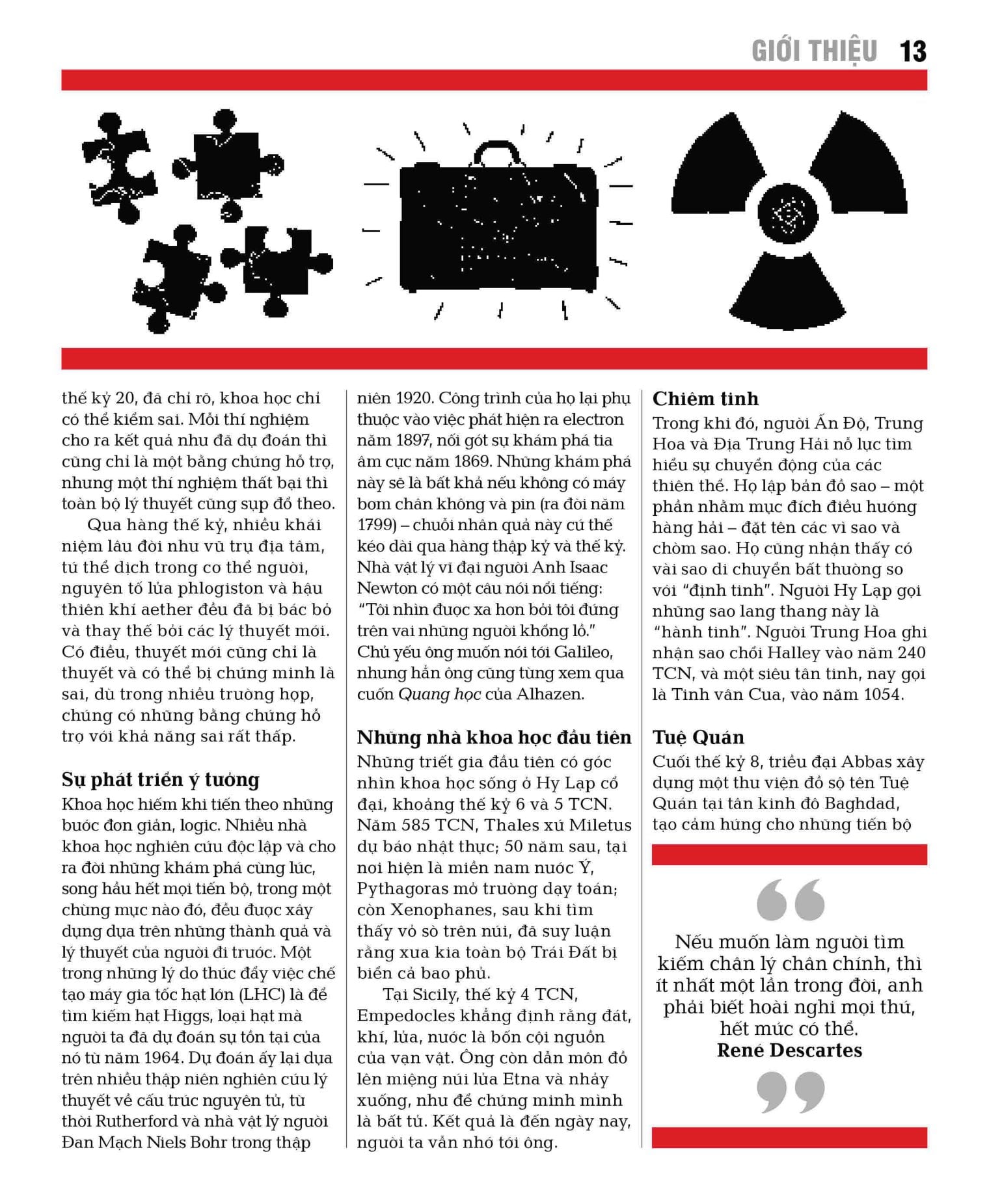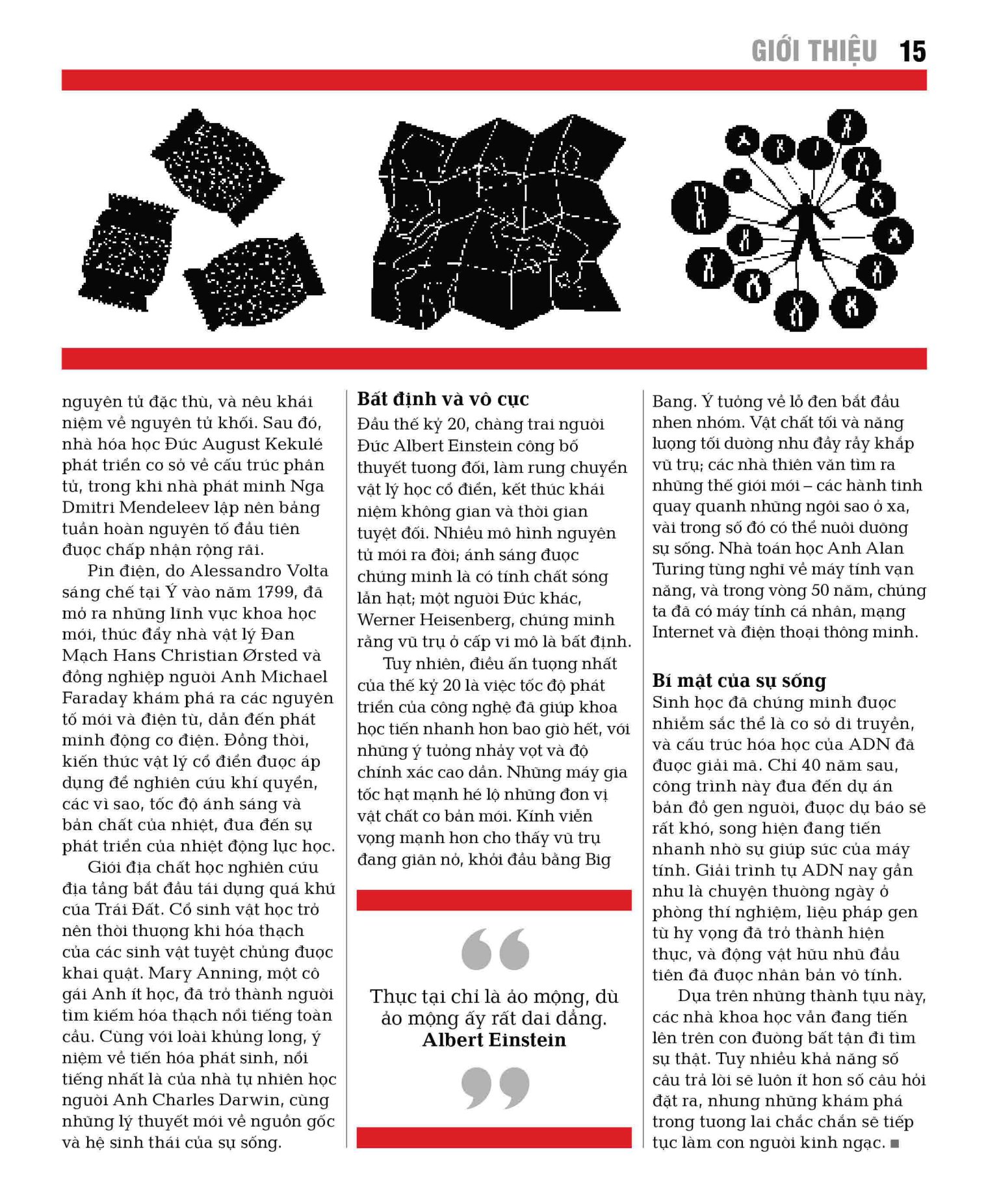 Phải chăng vũ trụ khởi nguyên từ vụ nổ Big Bang? Ánh sáng là sóng, là hạt – hay cả hai? Liệu có phải con người đã khiến Trái Đất nóng lên? Có hay không thuyết vạn vật? Khoa học đã giúp lý giải vũ trụ và thế giới mà chúng ta đang sống, mang đến những tiến bộ kỹ thuật cũng như mở rộng biên giới của kiến thức.
