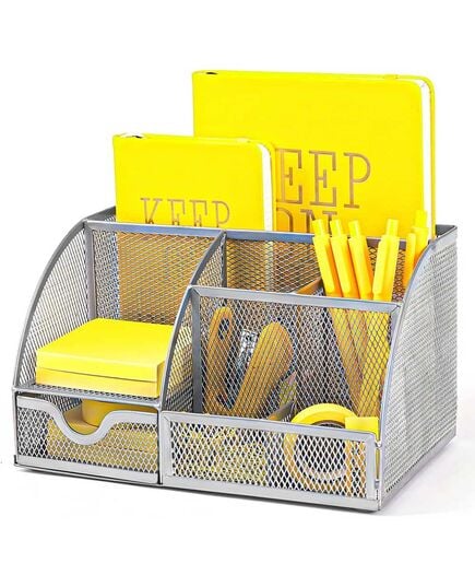 Khay Đựng Văn Phòng Phẩm Top Point HY348Khay đựng VPP kim loại TOPPOINT HY348 được làm bằng chất liệu thép không gĩ Khay gồm nhiều ngăn giúp người dùng phân chia đồ dùng: bút viết, ghim kẹp, bấm kim, kim bấm, kẹp giấy, bao thư... Khay đựng VPP Toppoint dạng đan lưới kim loại là một phụ kiện trang trí cực kỳ thanh lịch cho văn phòng của bạn. Khay đựng VPP Toppoint được thiết kế theo khay để bàn, được chia làm 3 ngăn với kích thước: W22 x L14 x H13cm Nhờ vậy, phụ kiện hoàn toàn không chiếm diện tích quá nhiều trong không gian của bạn. Ngược lại còn tạo cảm giác gọn gàng, năng động khi được bố trí trong văn phòng làm việc. Do có thiết kế đồng khối chắc chắn, bạn sẽ không phải lo lắng đế lọ bị tuột như những loại lọ đựng khác và có thể bỏ tùy thích lượng bút viết cần sử dụng vào trong. Sản phẩm được làm từ kim loại cao cấp thiết kế dạng đan lưới, thêm vào đó là lớp sơn tĩnh điện được phủ phía ngoài ít bị bám bẩn, dễ dàng vệ sinh Khay đựng VPP dạng đan lưới kim loại được gia công kĩ lưỡng giúp đem lại một sản phẩm có độ hoàn mỹ cao. Do được gia công từ chất liệu kim loại chắc chắn nên lọ có kết cấu vô cùng vững chãi. Khi bị va đập cũng ít bị biến dạng trong khi thành lo với độ dày vừa phải cũng đảm bảo làm kiên cố thêm cho chất lượng của lọ đựng.
