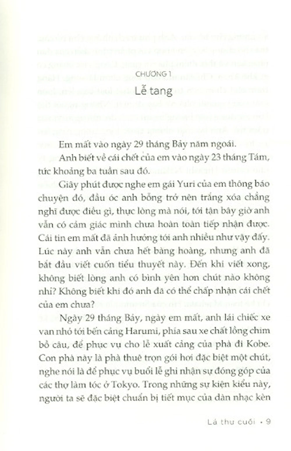 Mong em sẽ đọc tiểu thuyết này như là bức thư tình cuối cùng của anh gửi đến em nơi thiên đường.”