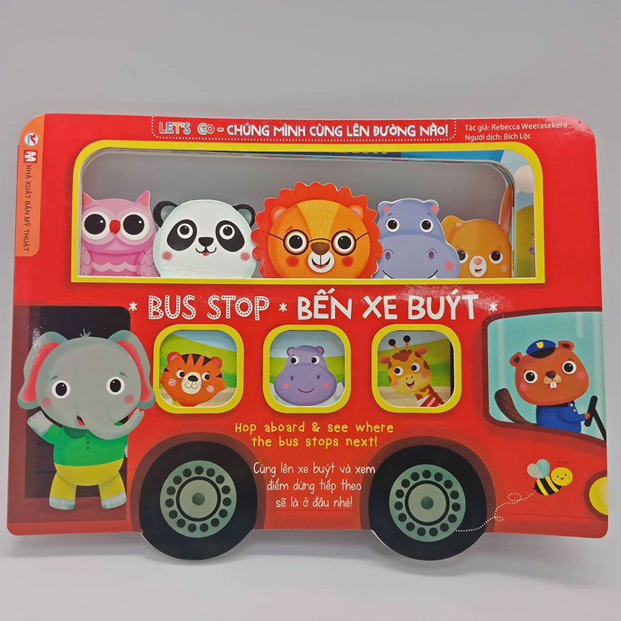 Xe buýt vào bến rồi! Mau mau mở sách xem trên xe có những câu chuyện hấp dẫn như thế nào! Hãy xếp hàng trật tự khi chờ xe và đứng dậy nhường chỗ cho người già và người yếu nhé!