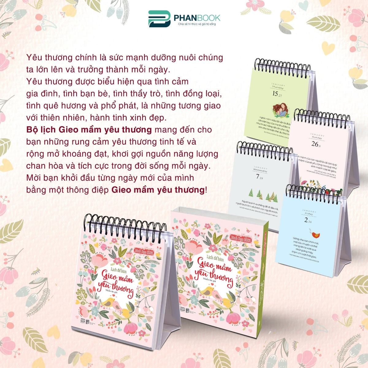 Bộ lịch Gieo mầm yêu thương mang đến cho bạn những rung cảm yêu thương tinh tế và rộng mở khoáng đạt, khơi gợi nguồn năng lượng chan hòa và tích cực trong đời sống mỗi ngày.
