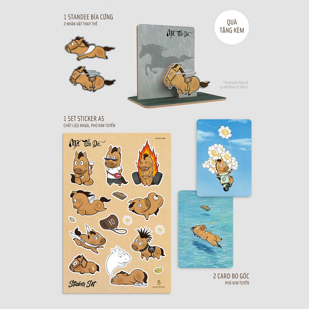 - Tặng kèm một sticker A5 nhựa cán kim tuyến, một standee bìa cứng, hai card bo góc.