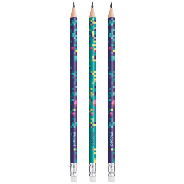 Vỉ 3 Chì Đen HB Kèm Gôm Pixel Party - Maped có ngòi chì HB đạt độ đậm chuẩn, độ bền cao, khó gãy. Sản phẩm hỗ trợ tối đa cho những bản vẽ hoàn hảo. Với bộ 3 cây, người dùng có đủ lượng bút chì trong thời gian dài, dễ dàng thay thế những lúc quên đem đồ chuốt bên mình.