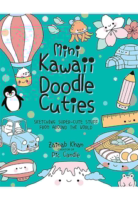 Learn how to draw a darling Eiffel Tower, macaron, and beret from France. Or master how to draw precious natural wonders like Australia’s Great Barrier Reef and enchanting architecture like India’s Taj Mahal. Or sketch fashion fun like a K-pop skirt from South Korea and charming transportation like a tuk tuk from Vietnam. Mini Kawaii Doodle Cutiesfeatures over 100 lovable, huggable characters and includes simple step-by-step illustrations and instructions, search-and-find puzzle patterns that you can color, and inspiration pages.