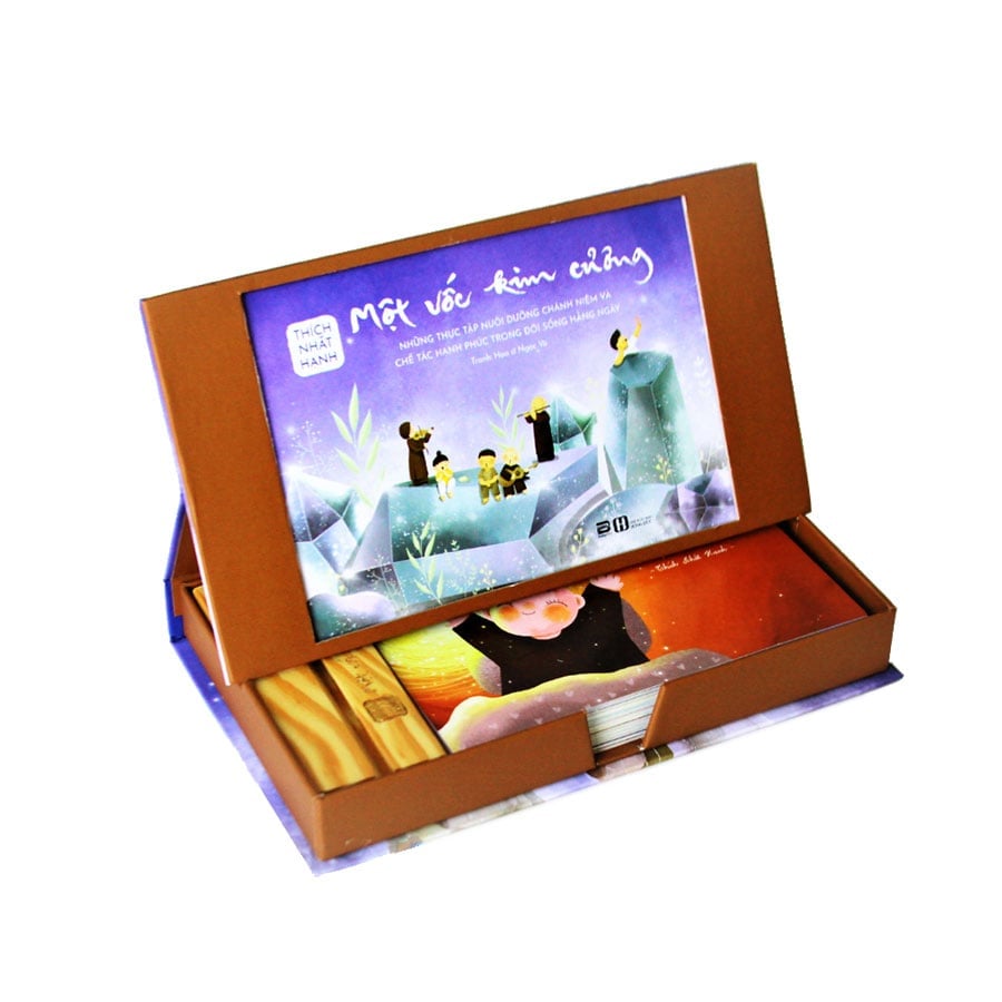 Một Vốc Kim Cương là tập hợp những bài thi kệ của sư ông Thích Nhất Hạnh nhằm hướng dẫn thiền tập cho người bận rộn trong đời sống hiện đại. Bộ postcard với những nét vẽ minh họa tươi tắn, đáng yêu giúp bạn thư thái tinh thần. Phiên bản hộp cao cấp, được thiết kế trang nhã, tiện dụng với nắp hộp đóng mở, đi kèm kệ gỗ và những tờ postcard được tách rời, phù hợp để trang trí góc làm việc cá nhân thêm phần sinh động. Đây cũng là món quà xinh xắn và ý nghĩa dành tặng cho những người thân yêu của bạn trong các dịp lễ.