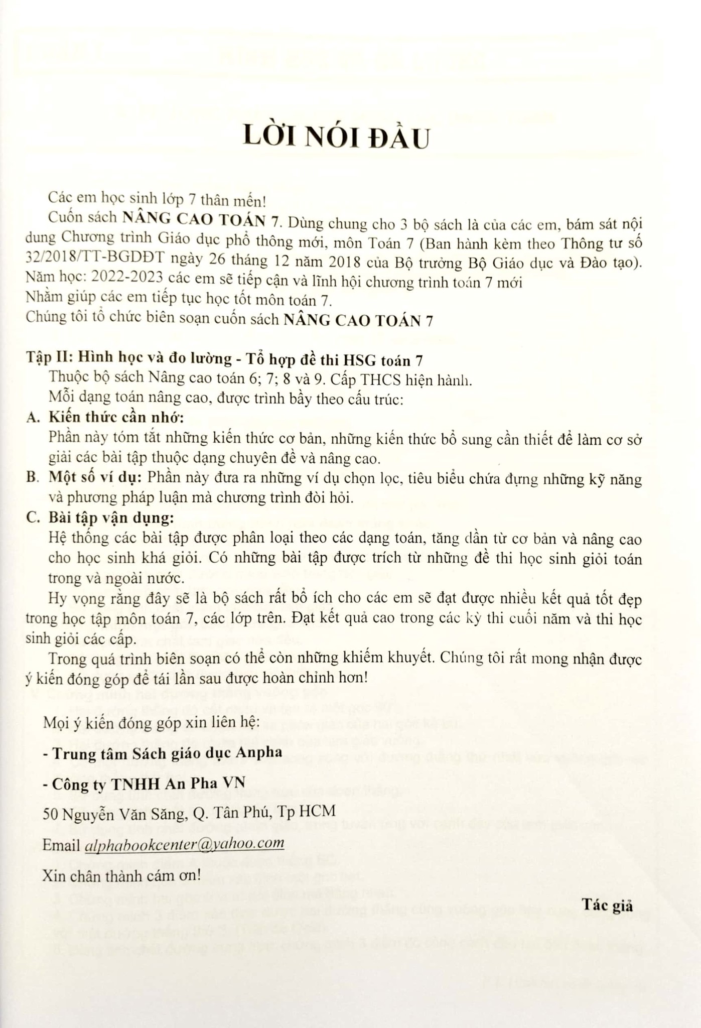 Hy vọng rằng đây sẽ là bộ sách rất bổ ích cho các em sẽ đạt được nhiều kết quả tốt đẹp trong học tập môn toán 7, các lớp trên. Đạt kết quả cao trong các kỳ thi cuối năm và thi học sinh giỏi các cấp.