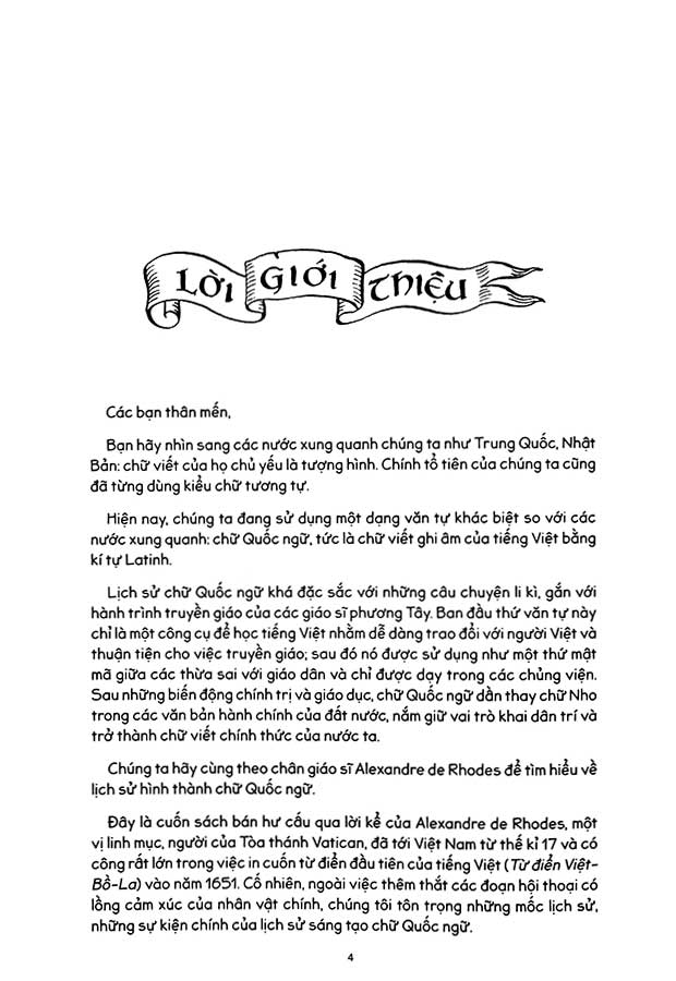 Người Việt gọi tôi là Cha Đắc Lộ - Hành trình sáng tạo chữ Quốc ngữ là cuốn tranh truyện bán hư cấu kể lại câu chuyện cuộc đời nhiều thăng trầm của giáo sĩ Đắc Lộ - Alexandre de Rhodes, một vị linh mục, người của Tòa thánh Vatican, đã tới Việt Nam từ thế kỉ 17 và có công rất lớn trong việc in cuốn từ điển đầu tiên của tiếng Việt (Từ điển Việt-Bồ-La) vào năm 1651.