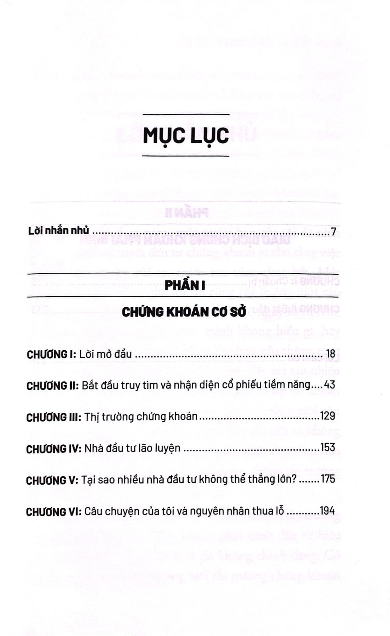 Lời trích “Tính đến hôm nay, tôi đã trải qua gần 15 năm đầu tư liên tục trên thị trường chứng khoán, từng rất nhiều lần thắng thua và được mất nhiều tỷ đồng, qua đó tôi cũng đã tích lũy được những kinh nghiệm, bài học xương máu để chia sẻ tỉ mỉ trong cuốn sách này.”