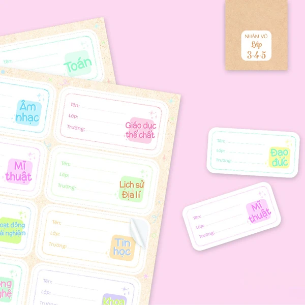 Nhãn vở dùng để ghi họ tên đính ở tập sách vở giúp các em phân biệt được các môn học khác nhau, tạo hứng thú khi mở sách vở ra học bài.