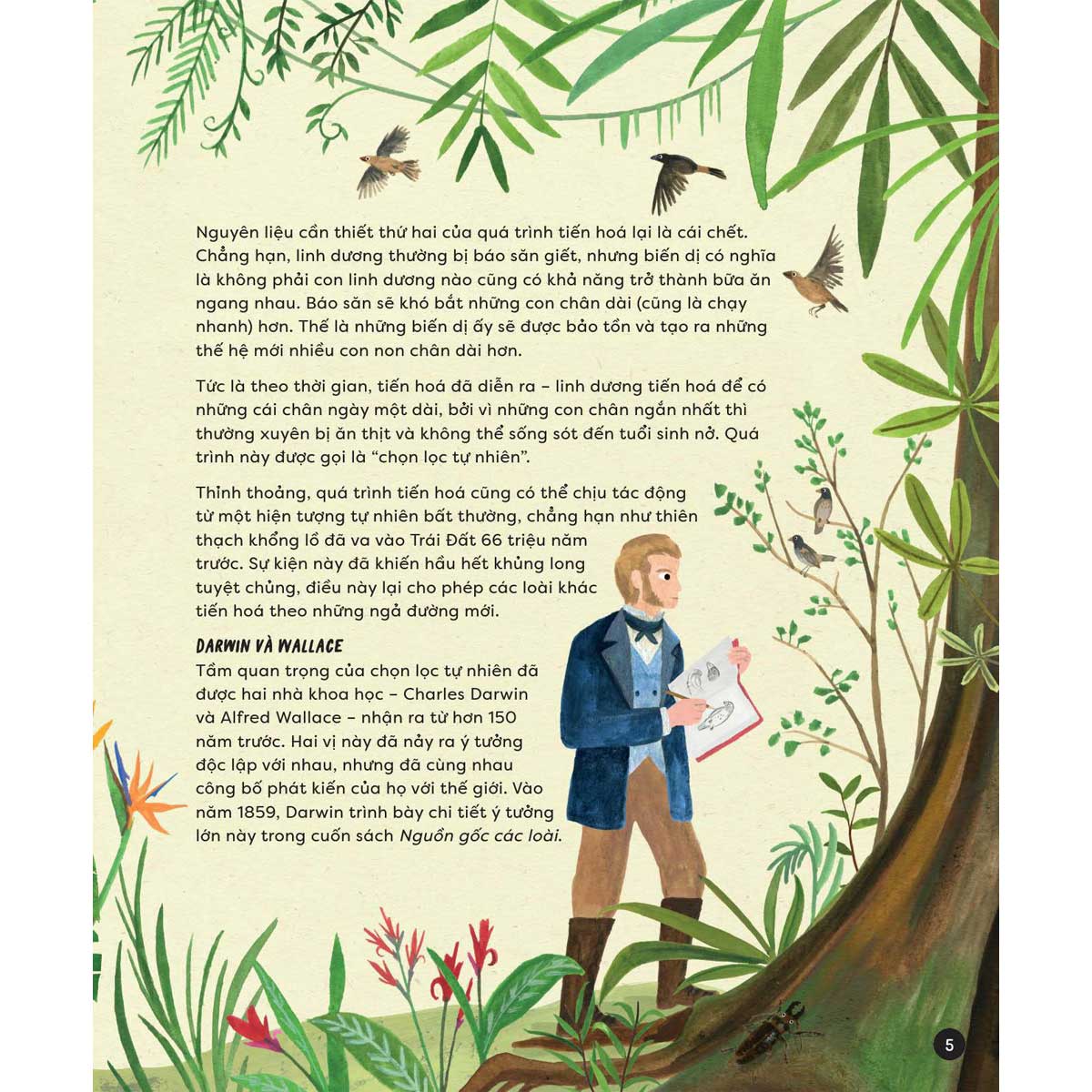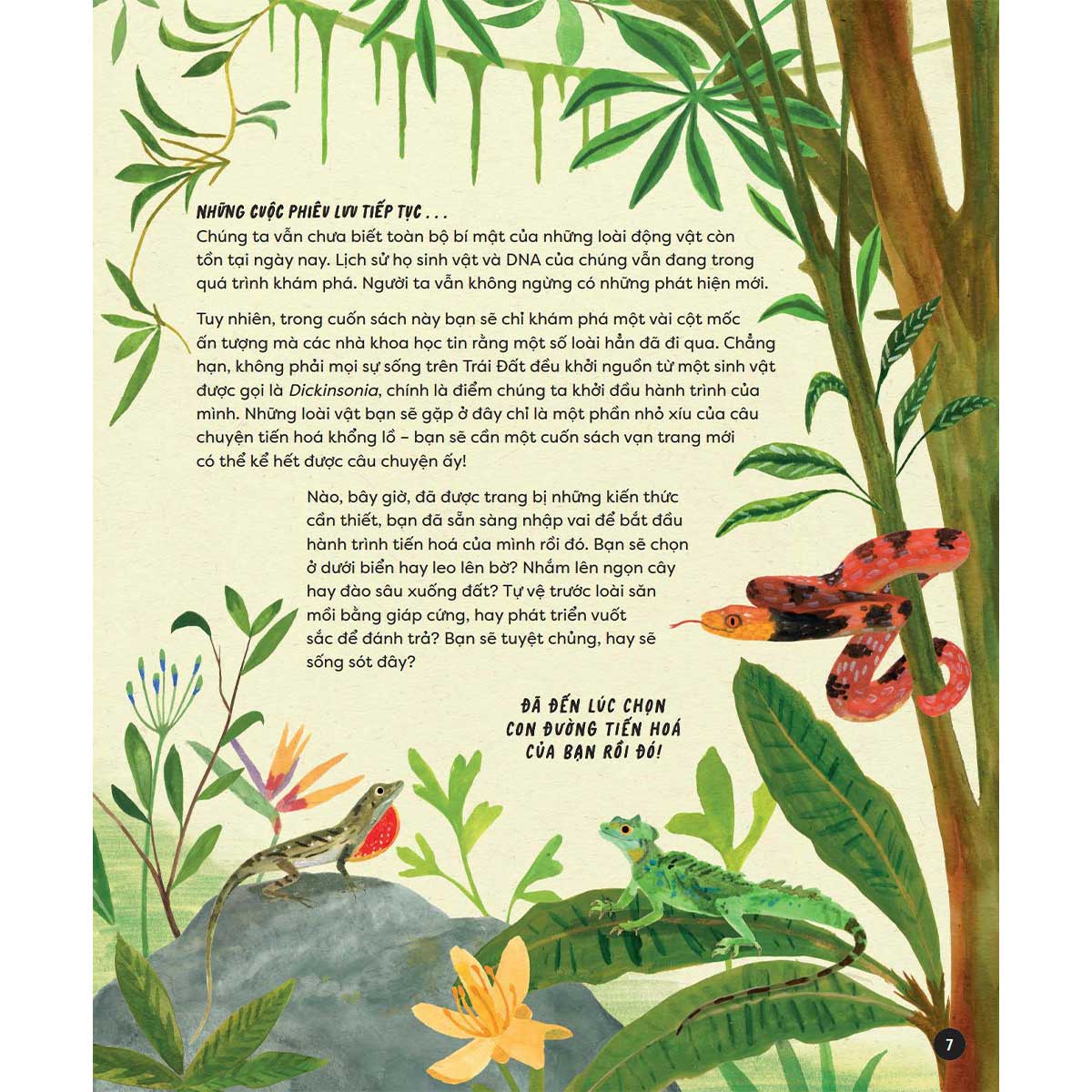Hãy nghĩ đến một con vật, loài nào cũng được: cá mập, mực, sên, tinh tinh,… Bạn biết không, bất kể con vật bạn nghĩ đến thuộc loài nào đi thì chúng cũng cất giấu một lịch sử bí mật đấy! Suốt hàng trăm triệu năm qua, mọi loài trên đời đều là sự tồn tại thách thức bóng ma của tuyệt chủng. Trên hành trình ấy, có người thắng kẻ thua, có bạn lẫn thù, có đấu tranh và nhọc nhằn. Hành trình này mang tên TIẾN HOÁ.