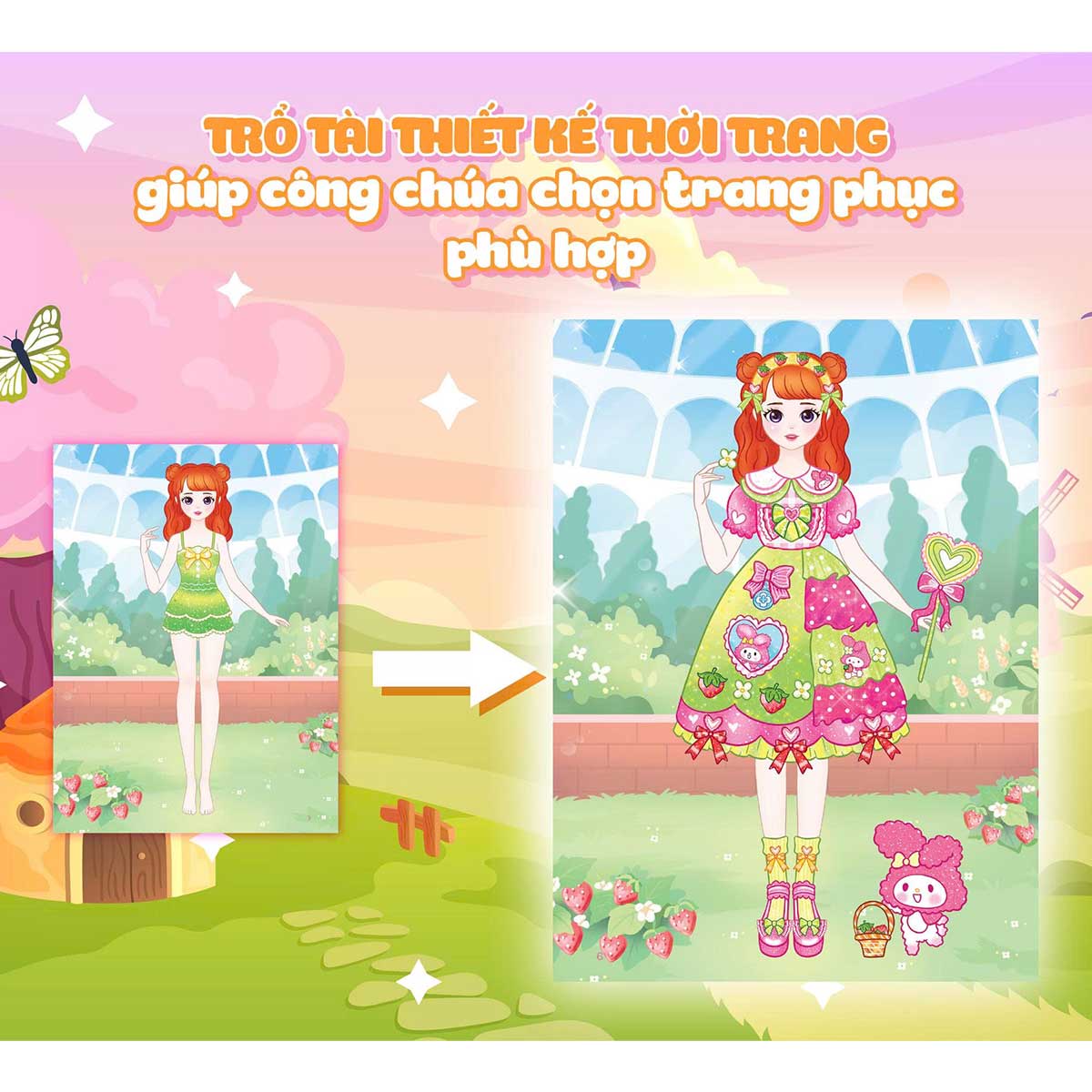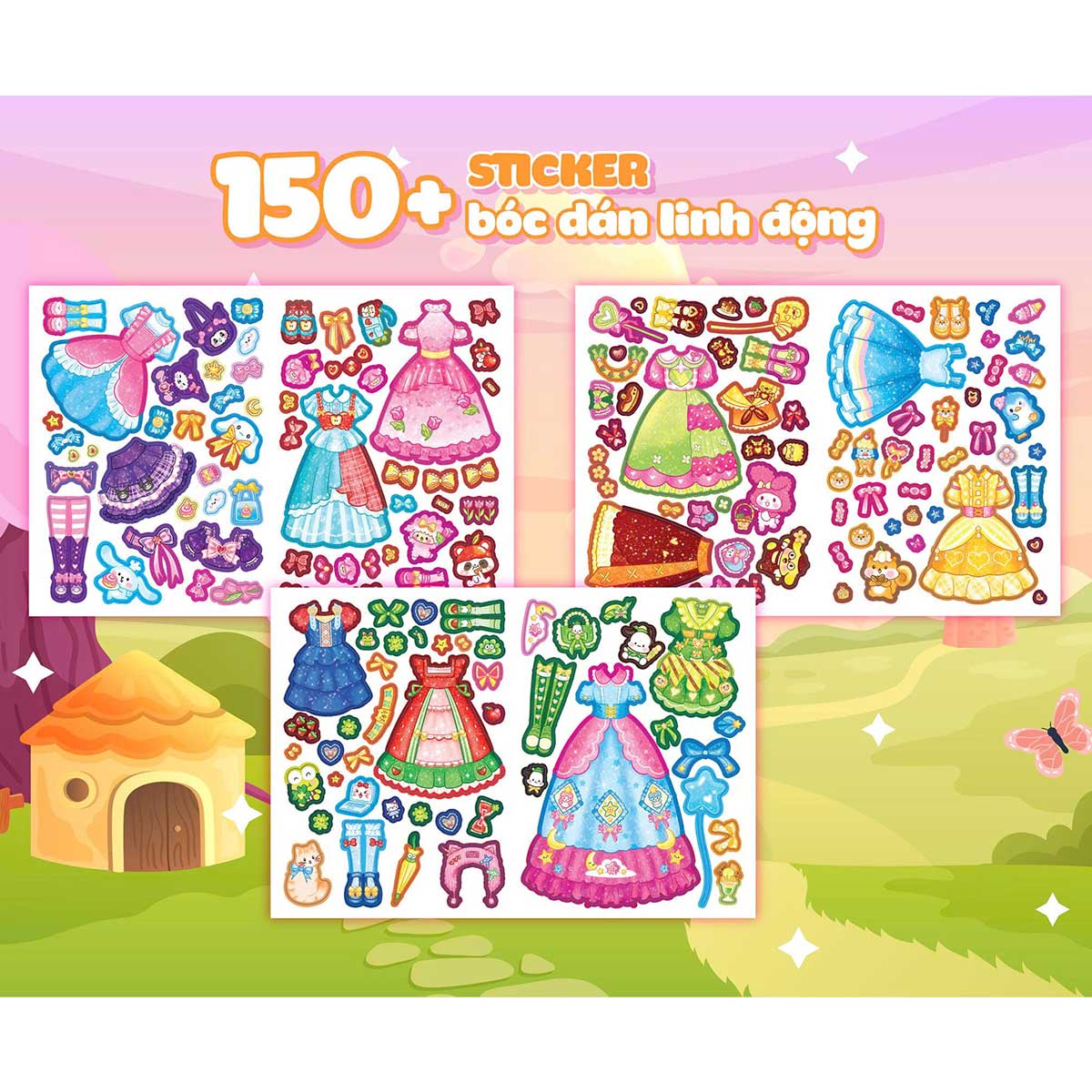 - Với chất liệu giấy cùng sticker dày dặn, chống thấm, chống rách giúp bé có thể bóc dán một cách chân thực, đẹp nhất. Bé có thể thỏa sức sáng tạo thời trang với 12 hình công chúa ở mỗi chủ đề.