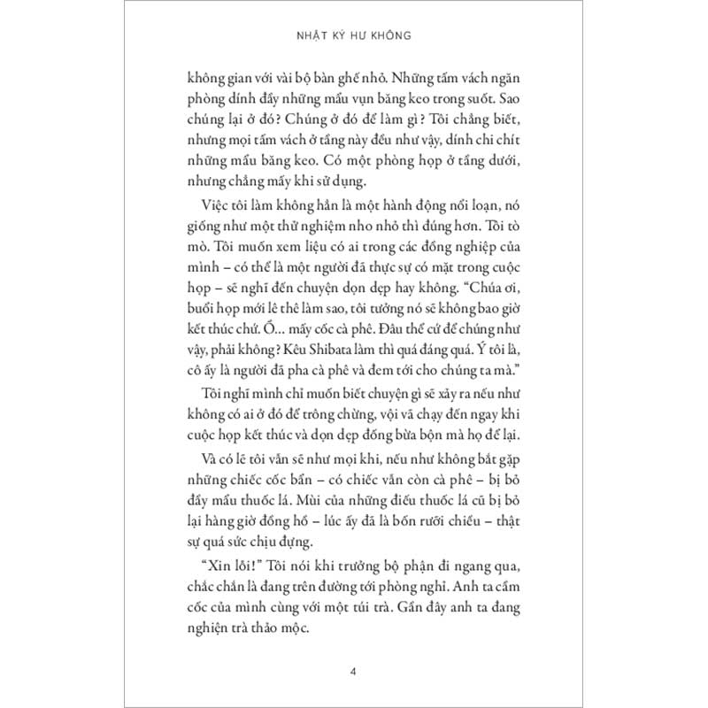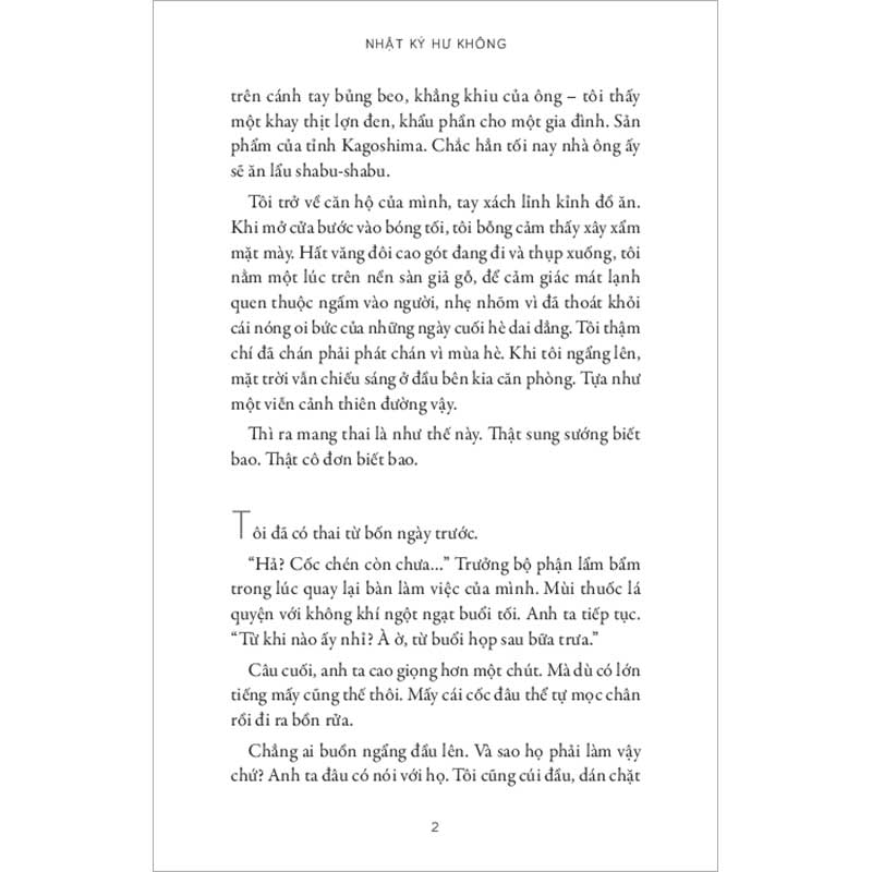 Sáng tác của Emi Yagi luôn thể hiện cái nhìn sâu sắc về đời sống công sở và kỳ vọng giới ở nước Nhật hiện đại. Kể về một nữ nhân viên văn phòng “bỗng nhiên” mang thai nhằm tránh thoát khỏi những gánh nặng không tên nơi công sở, “Nhật ký hư không” là sự châm biếm sắc bén một xã hội phụ quyền đặt quá nhiều kỳ vọng vào phụ nữ, và mỉa mai tình trạng đối xử hà khắc một cách hiển nhiên với những người phụ nữ trong môi trường công sở.