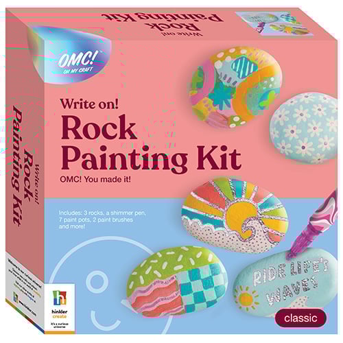 Rock painting is a hugely accessible and satisfying craft for all ages. OMC! Write On! Rock Painting Kit adds an exciting extra element with a shimmer pen to draw and write notes in addition to the 5 on-trend paint colours and 2 paintbrushes. With everything you need to create 3 rock projects, plus inspiration and instructions for more!