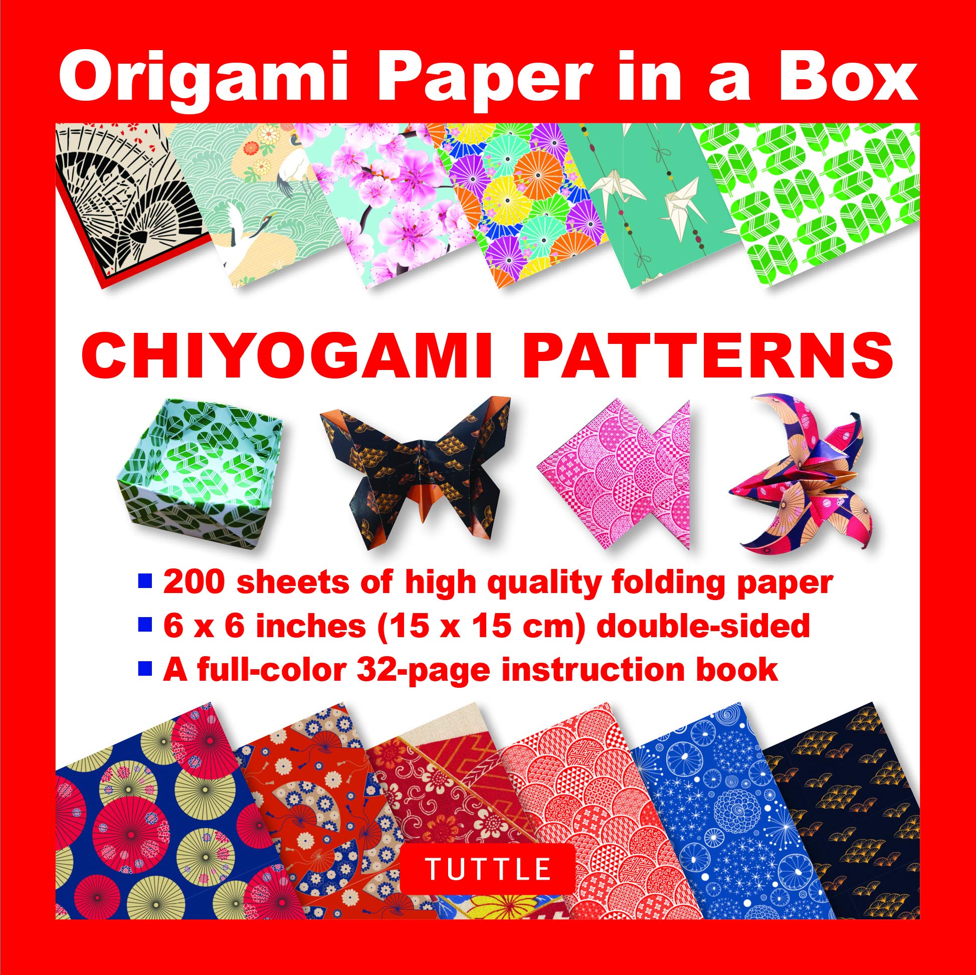 Origami Paper in a Box - Chiyogami Patterns: 200 Sheets of Tuttle Origami Paper: 6x6 Inch High-Quality Origami Paper Printed with 12 Different Patterns: 32-page Instructional Book of 12 Projects