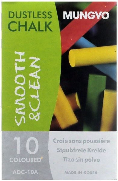 - Phấn Màu Không Bụi Mungyo ADC-10A là vật dụng cần thiết cho học sinh và giáo viên sử dụng ở trường học. Sản phẩm được sản xuất theo công nghệ hiện đại, viên phấn chắc chắn, tiết kiệm tối đa khi sử dụng. Phấn được làm từ chất liệu cao cấp, ít bụi, an toàn cho sức khỏe người sư dụng.