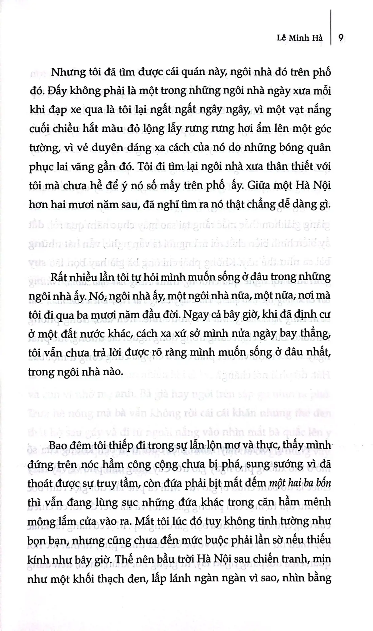 Cả 3 cuốn tiểu thuyết ra mắt bạn đọc của Lê Minh Hà lần này đều về Hà Nội, gắn với Hà Nội, đủ để bạn đọc thấy rằng Hà Nội là một vùng đất đặc biệt có ý nghĩa, không thể dứt bỏ trong tâm trí cũng như sự nghiệp sáng tác của chị.