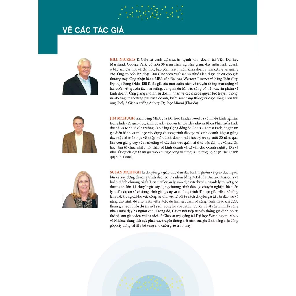 - William G. Nickels: Giáo sư danh dự tại Đại học Maryland, với hơn 30 năm kinh nghiệm và 4 lần giành giải Giáo viên Xuất sắc nhất học đường.
