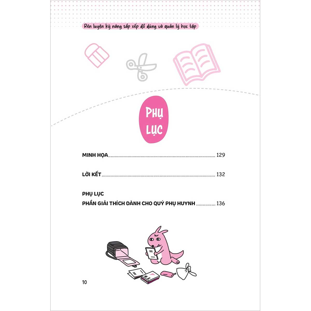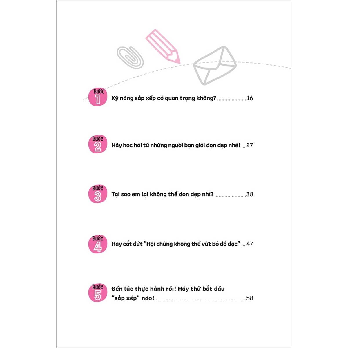 Bên cạnh việc rèn luyện kỹ năng, cuốn sách còn khuyến khích trẻ xây dựng thái độ tích cực đối với học tập và sinh hoạt thường ngày. Thay vì xem việc dọn dẹp hay sắp xếp sách vở là nhiệm vụ mang tính ép buộc, trẻ được hướng dẫn nhìn nhận đây như một cơ hội để phát triển bản thân, làm chủ không gian và thời gian của mình.