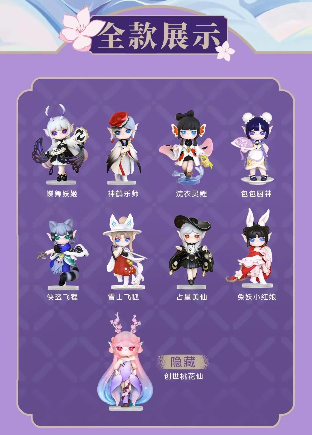 Mở hộp bí mật là cuộc phiêu lưu sưu tập tuyệt đỉnh, với một bí mật ẩn chứa trong mỗi hộp. Và bộ sưu tập Suri này đã đưa điều đó lên một tầm cao kỳ diệu! Bên ngoài hộp, bạn sẽ thấy chú bướm Suri vui vẻ với râu và áo choàng đen có cánh, nhưng bên trong, một trong chín mô hình Suri đặc biệt đang chờ bạn khám phá. Mỗi hộp đều chứa một bất ngờ. Tám mô hình khá phổ biến và vô cùng dễ thương, nhưng phần thưởng cao nhất chính là nàng tiên hoa đào quý hiếm. Với mái tóc hồng chuyển dần sang áo choàng tím xanh, nàng chỉ xuất hiện với tỷ lệ 1 trên 96 lần.