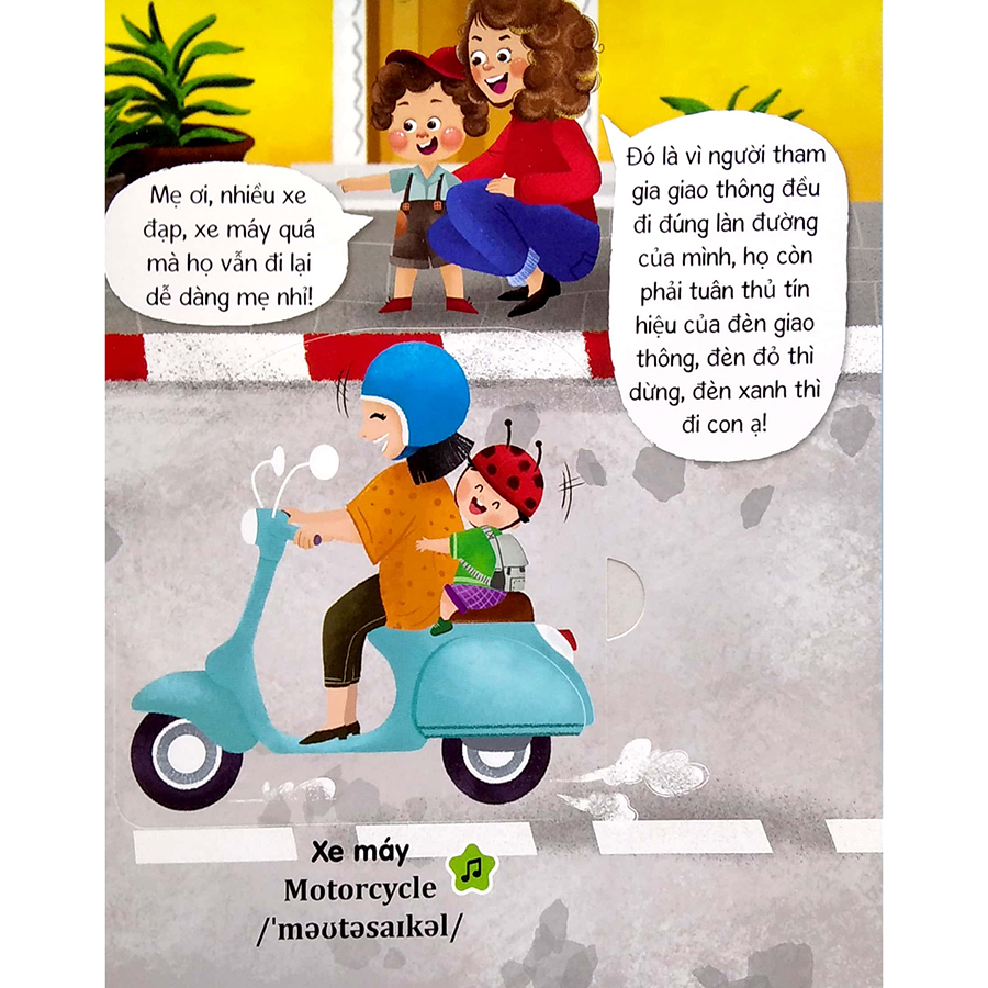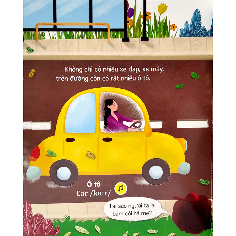 ♥ Chuỗi âm thanh quen thuộc trong cuộc sống hàng ngày và những bức tranh minh họa màu sắc sắc nét, tươi tắn, kèm theo các miếng lật mở có thể biến tấu thành câu chuyện bằng sự sáng tạo của bố mẹ giúp trẻ có thêm nhiều cách tiếp cận thú vị với cuốn sách.