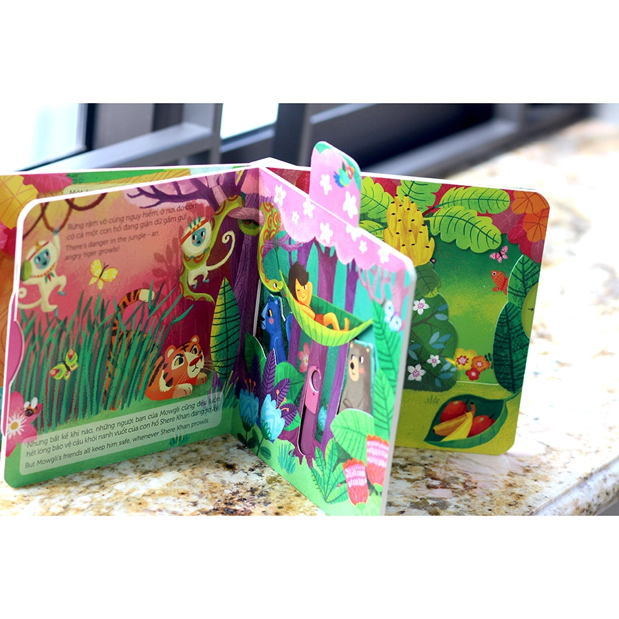 Chuyện gì sẽ xảy ra với Mowgli tiếp theo? Mở sách để ĐẨY – KÉO – TRƯỢT và khám phá nào!