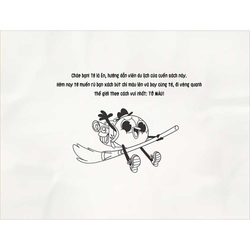 Chào bạn! Tớ là Én, hướng dẫn viên du lịch của cuốn sách này. Hôm nay tớ muốn rủ bạn xách bút chì màu lên và bay cùng tớ, đi vòng quanh thế giới theo cách vui nhất: TÔ MÀU!