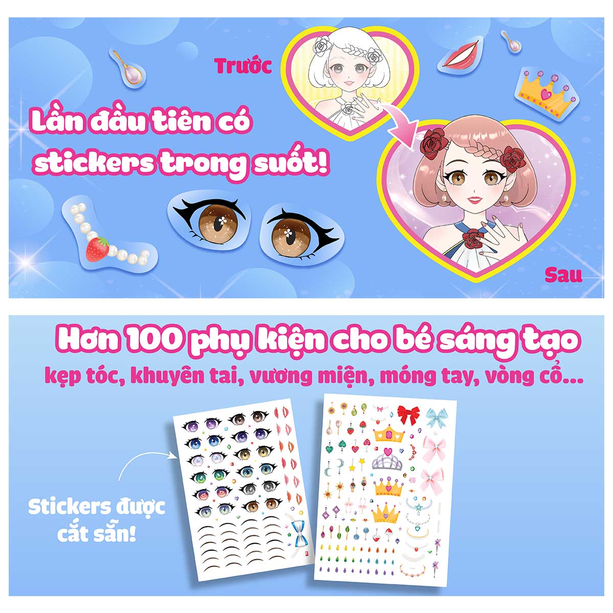 Megabook lần đầu tiên phát hành Sách trang điểm có Sticker hình dán trong suốt, giúp các bé có thể chơi bóc dán trang điểm một cách chân thực, đẹp nhất. Các bé có thể thỏa sức sáng tạo với 24 hình công chúa.