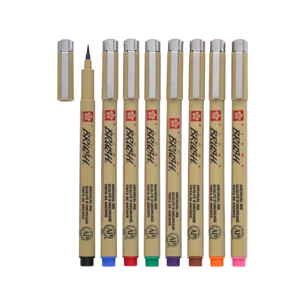 - Màu sắc: Dòng Pigma Brush có sẵn nhiều màu sắc sống động, bao gồm Đen, Đỏ, Xanh dương, Xanh lá, Cam, Nâu, Hồng, Tím và Sepia.