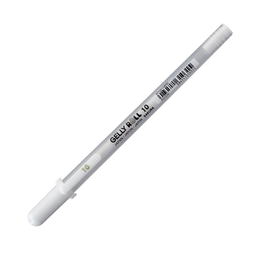 Bút gel màu trắng của Sakura là dòng sản phẩm Sakura Gelly Roll Classic White, nổi tiếng là cây bút gel đầu tiên trên thế giới và được yêu thích bởi khả năng tạo ra mực trắng đục, nổi bật trên các bề mặt giấy tối màu hoặc đã tô màu.
