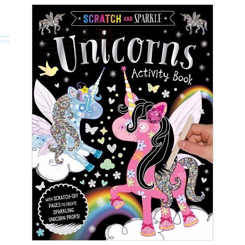 Introducing the Unicorns Activity Book, a fun addition to the popular Scratch and Sparkle range at MBI. This title is packed with exciting activities to complete, as well as unique craft ideas for creating beautiful art with the scratch-off pages at the back of the book. Complete with a wooden scratcher and 8 sheets of card, this book is perfect for lovers of all things sparkly! A FUN ADDITION TO MBI’S POPULAR SCRATCH AND SPARKLE SERIES, INCLUDING A WOODEN SCRATCHER AND SPARKLY CARD PAGES!