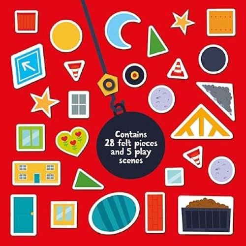 Join the diggers and dumpers and learn first shapes on the construction site with this felt play and learn book. Children will enjoy using their creative skills as they find and place the construction-themed pieces onto the play felt pages to learn first shapes. The soft felt clings securely to the pages and can be used time and time again - perfect for hours of imaginative play. The felt pieces can be stored in the integral clear vac tray at the top of the book when play is finished.
