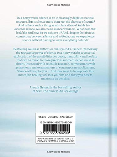 In Silence, Joanna Nylund reflects on the cultural, scientific and spiritual impact of silence and the ways in which it has impacted our human history, whilst suggesting how we might be able to harness it's power to boost our health. With practical tips and techniques, Nylund demonstrates that integrating moments of silence into our everyday routine can boost creativity, increase communication and improve mental health.